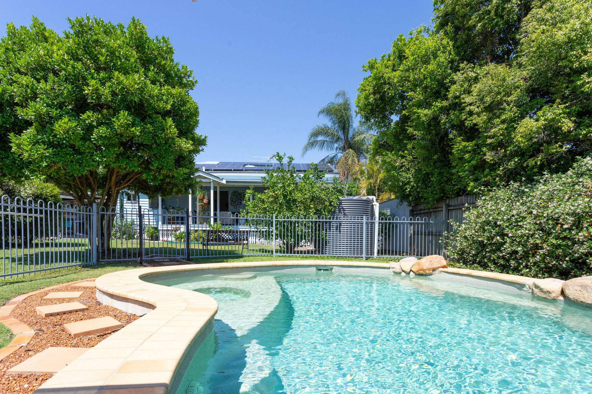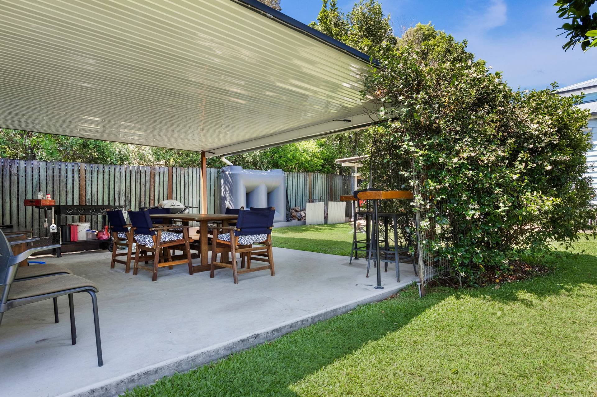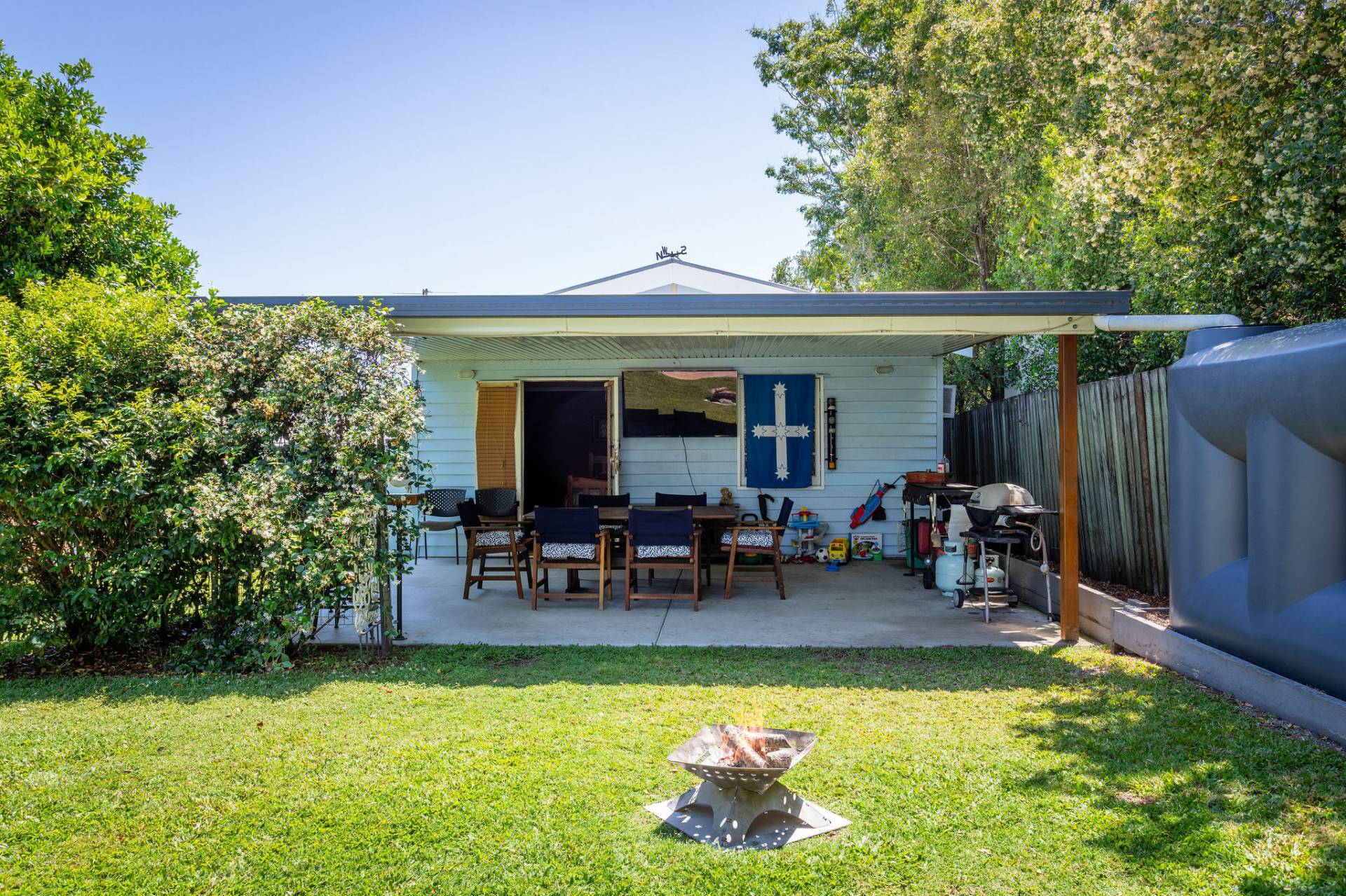 The flat yard which is fully fenced is safe and secure for hours of fun filled play time.