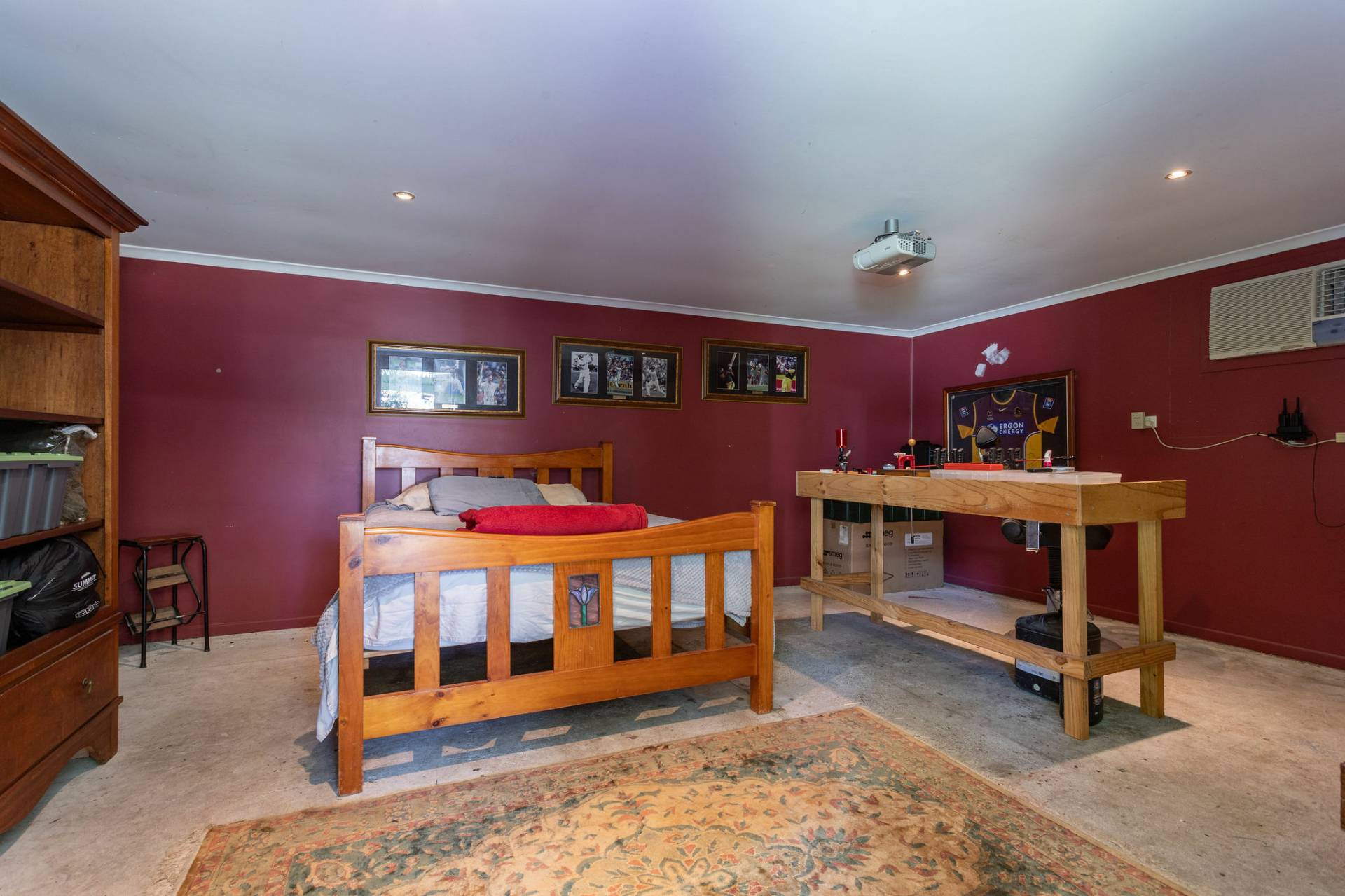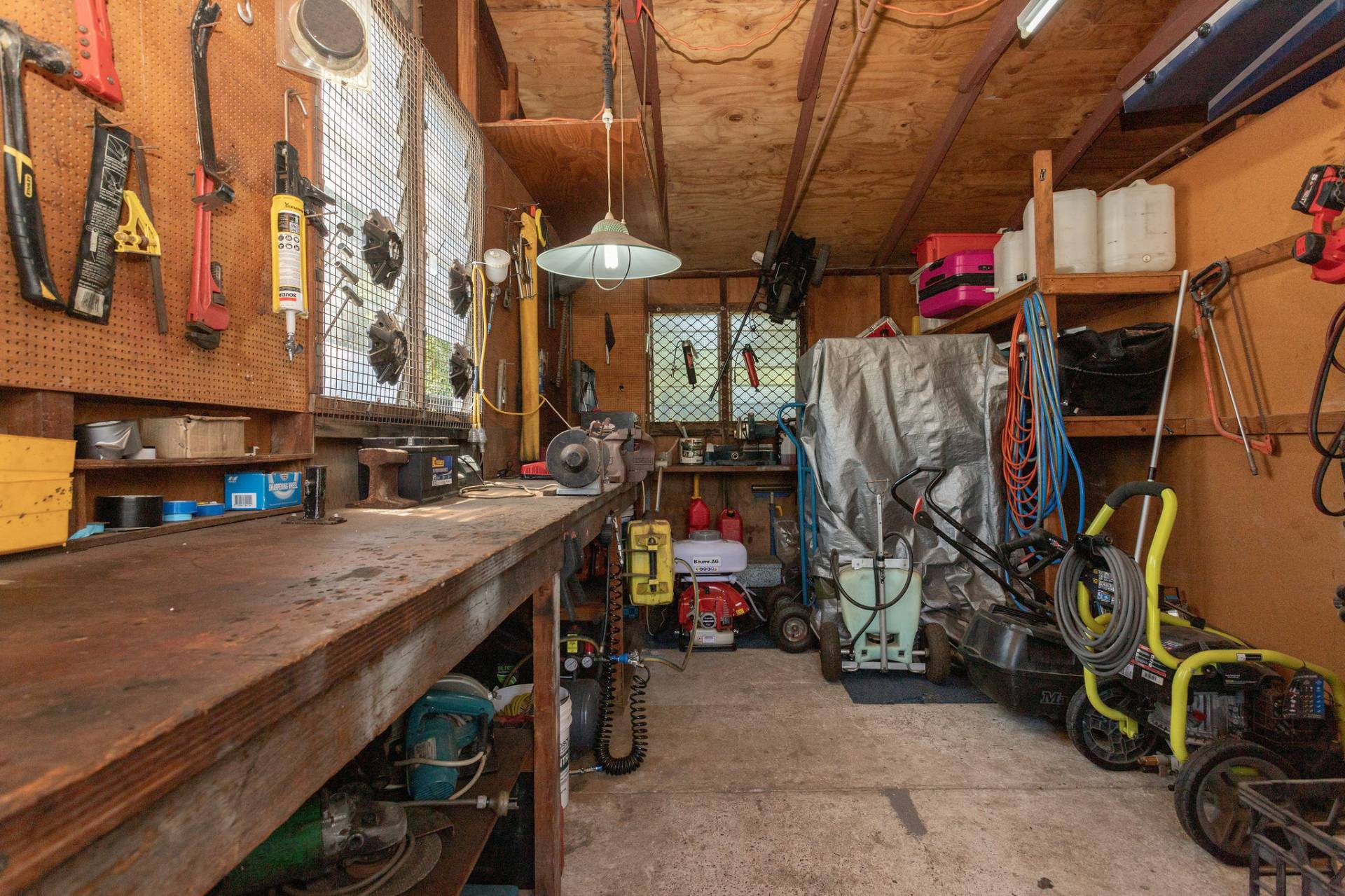 The original double garage has been converted to a rumpus with an outside entertainment area, could also be a gymnasium or home office. A useful workshop backs onto this space.