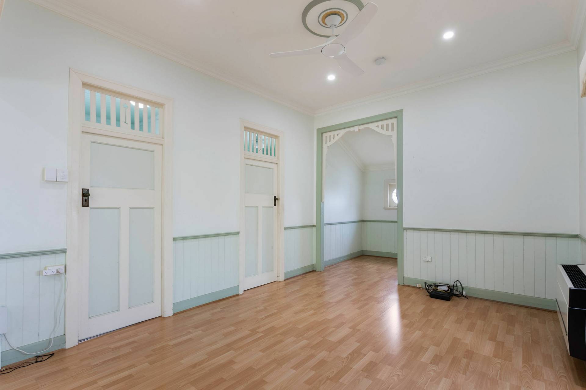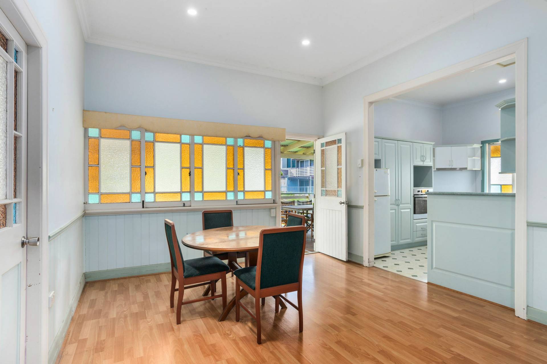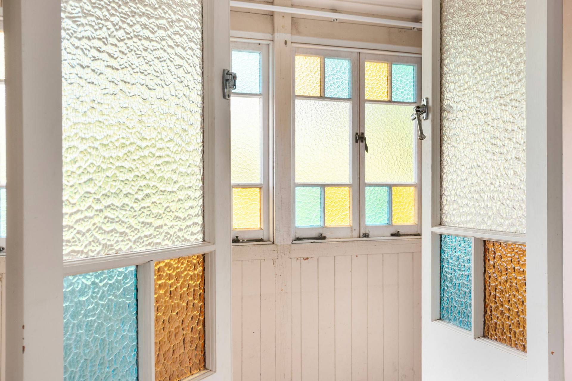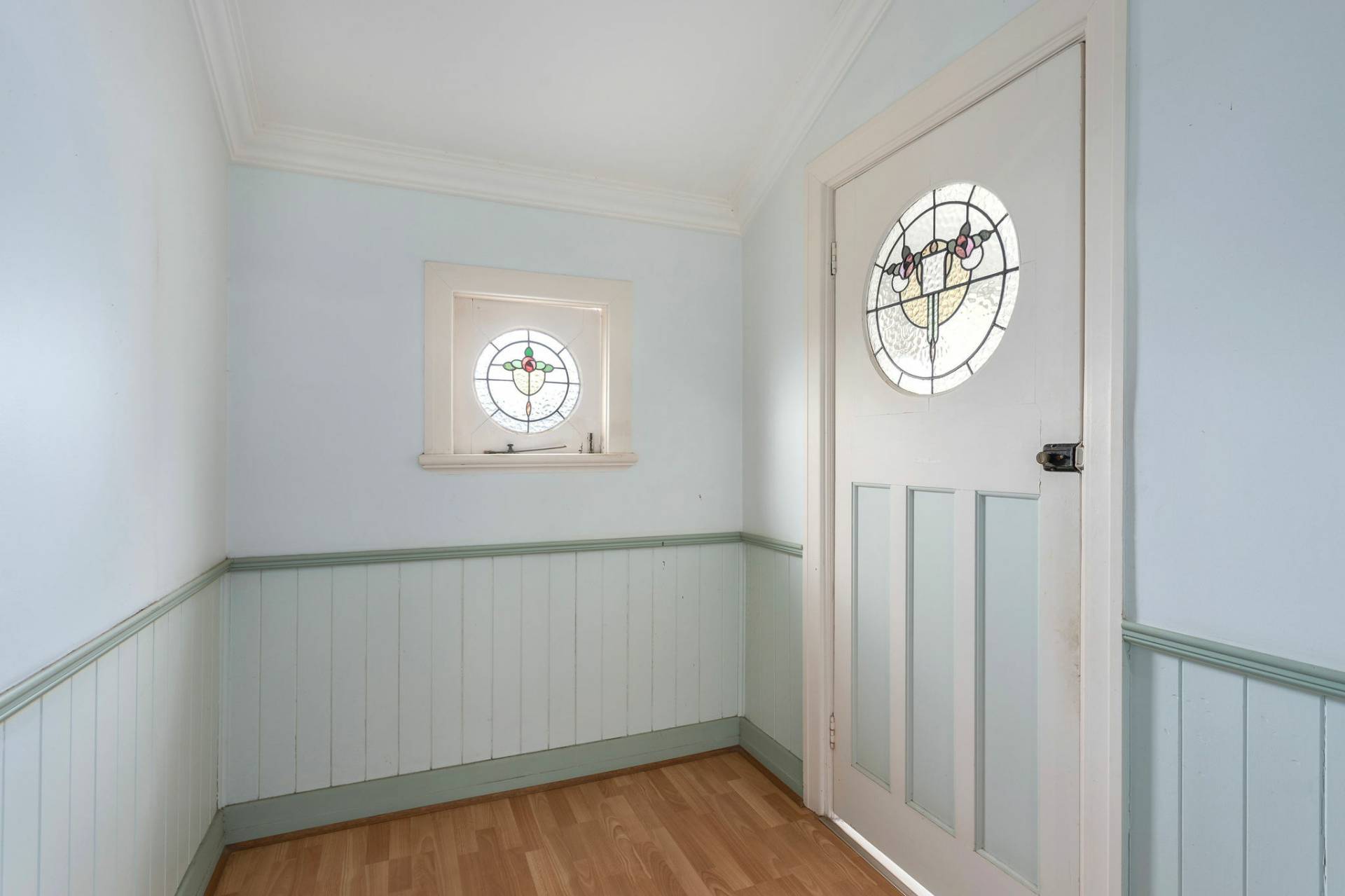 Many original features include timber fret work and an abundance of coloured glass windows. Very generous living space and the kitchen is well appointed with loads of cupboards and bench space.