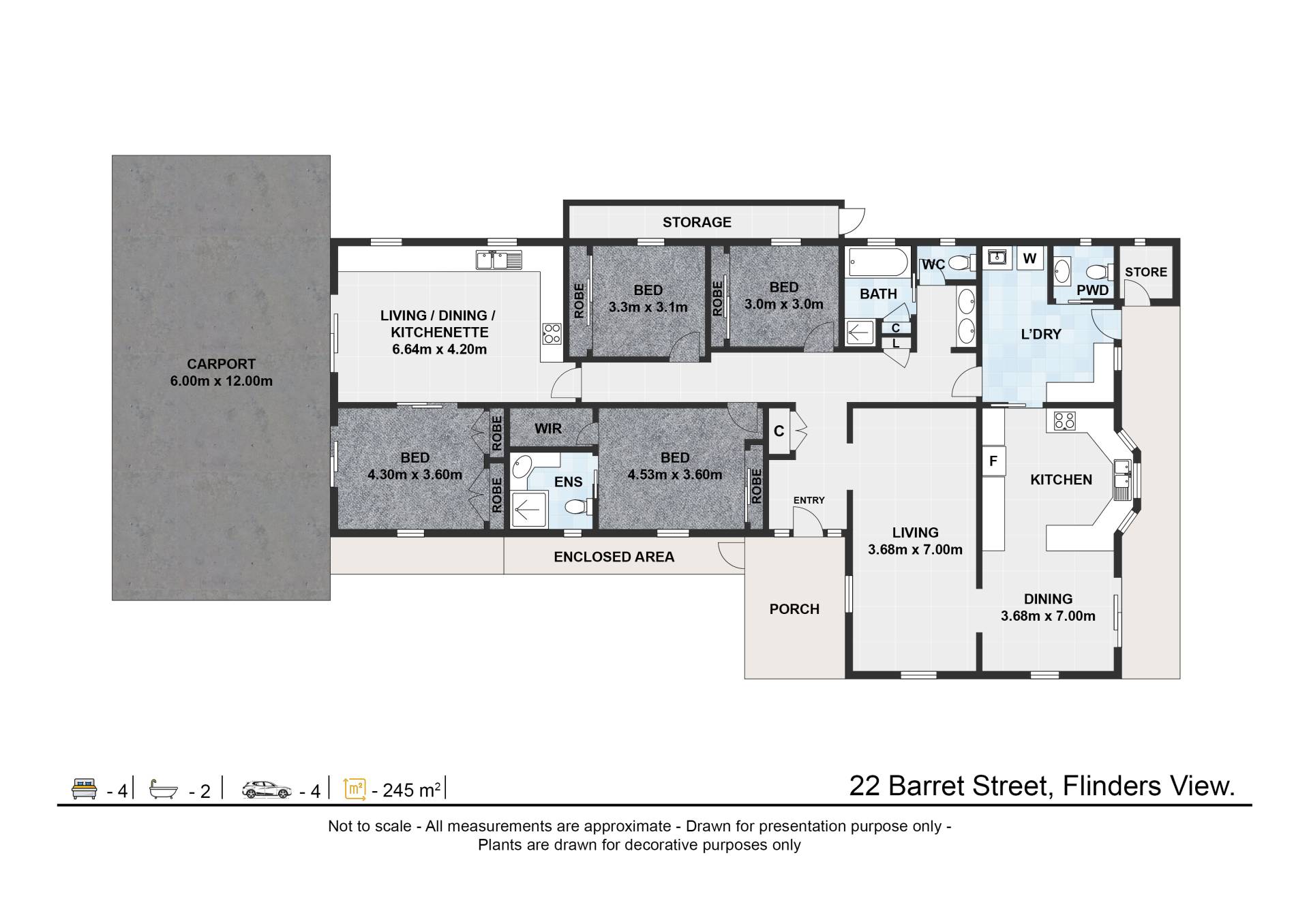 The original garage has been converted to a second living space with more storage and fourth bedroom. Plumbing for the separate bathroom to this area backs on the ensuite so could be easily connected to provide a third bathroom to this space.