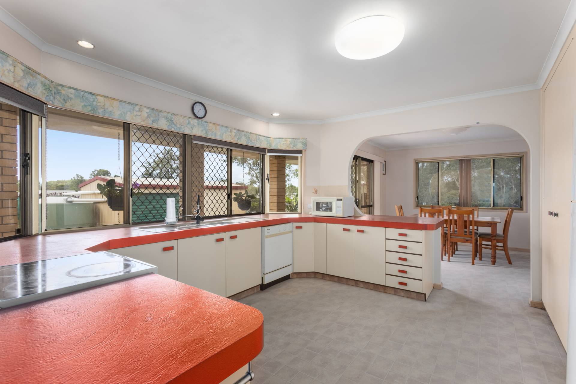 Formal living adjoins the main entry and flows through to dining and a well appointed kitchen with miles of bench space, cupboards and 2 double door pantries.