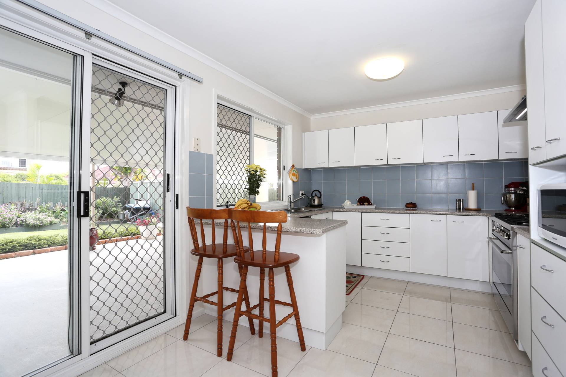 There is a kitchen with huge cupboard and pantry space and a fantastic gas Smeg stove. A huge, insulated wrap around patio provides massive entertaining space. The low maintenance garden is fully fenced and there is a 20x10 shed for storage. The bedrooms are all built in and are a generous size with a second living area that could be used as a fourth bedroom or guest accommodation. All doors and windows have security screens.