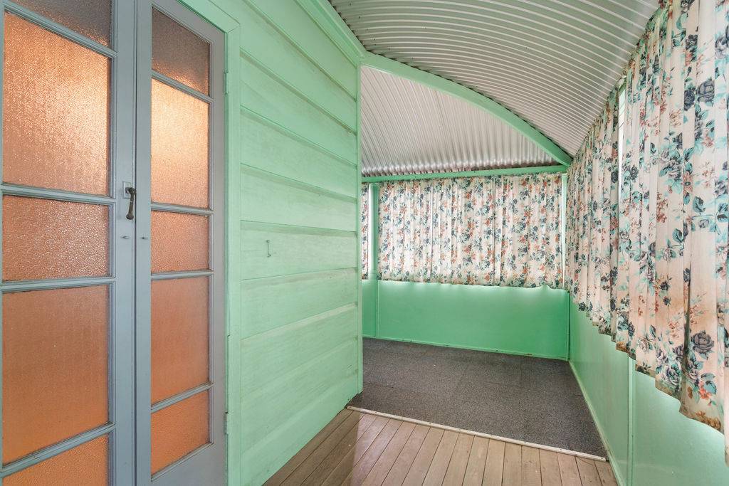 To the rear, a large utility space — once used as a photographic darkroom — accompanies the main bathroom. Enclosed verandahs, completed decades ago, have helped preserve the flooring while enhancing internal space. Structural upgrades include a roof replacement, concrete stumps, and an electrical update, all contributing to the home’s lasting integrity.