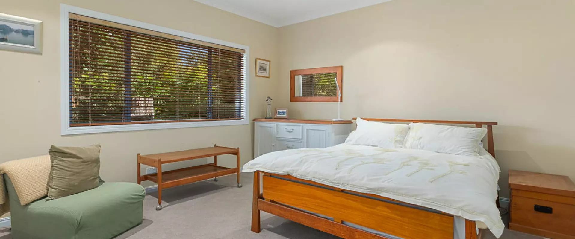 • A wide Privacy wall separated Master suite with garden access, walk-in robe (including shoe cupboard), and a luxe ensuite with walk-in shower, elegant bath & plantation shutters
