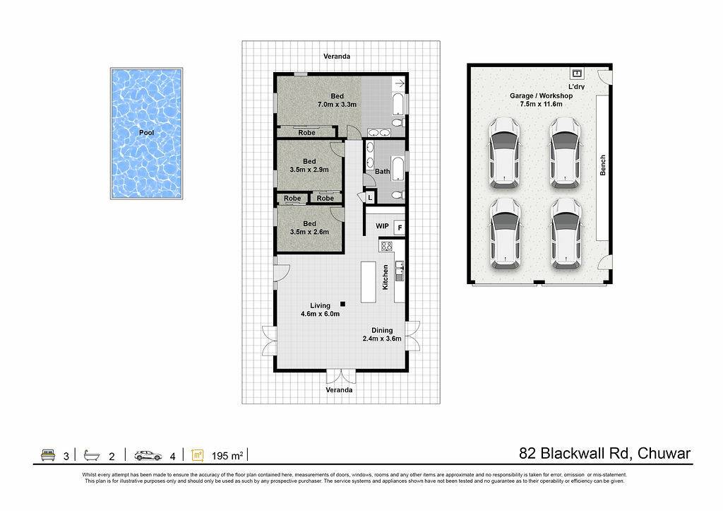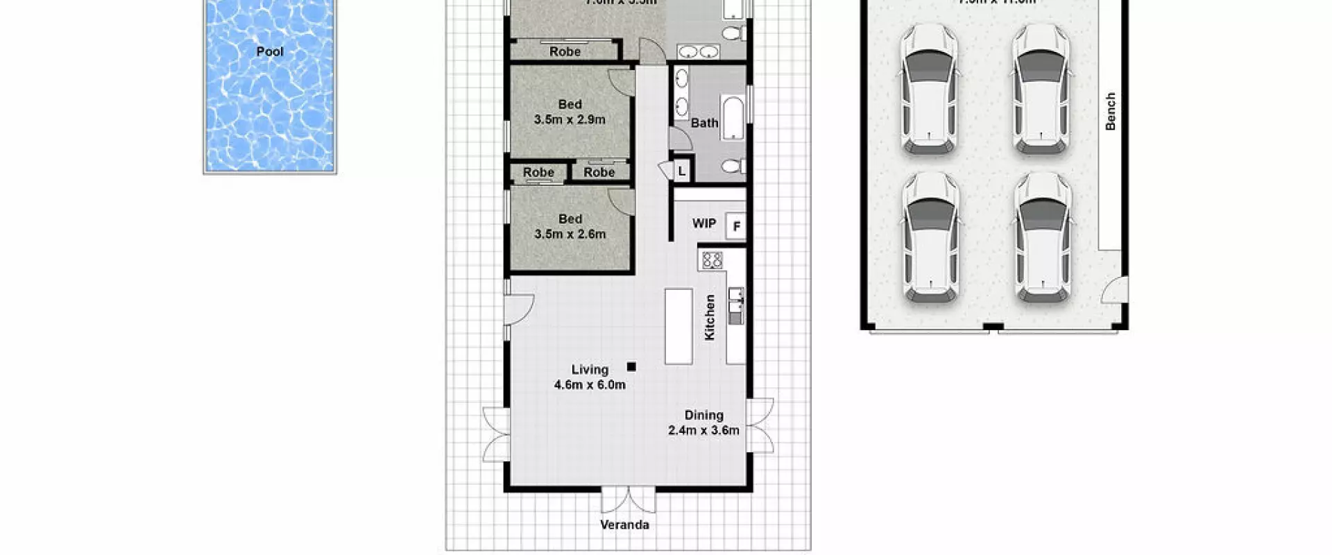 • 12m x 7m powered shed with multiple remote-control doors, laundry area, and space for up to 4 vehicles
