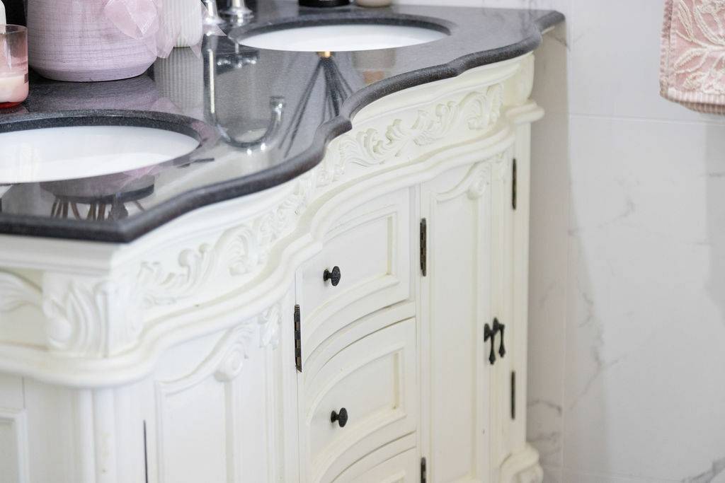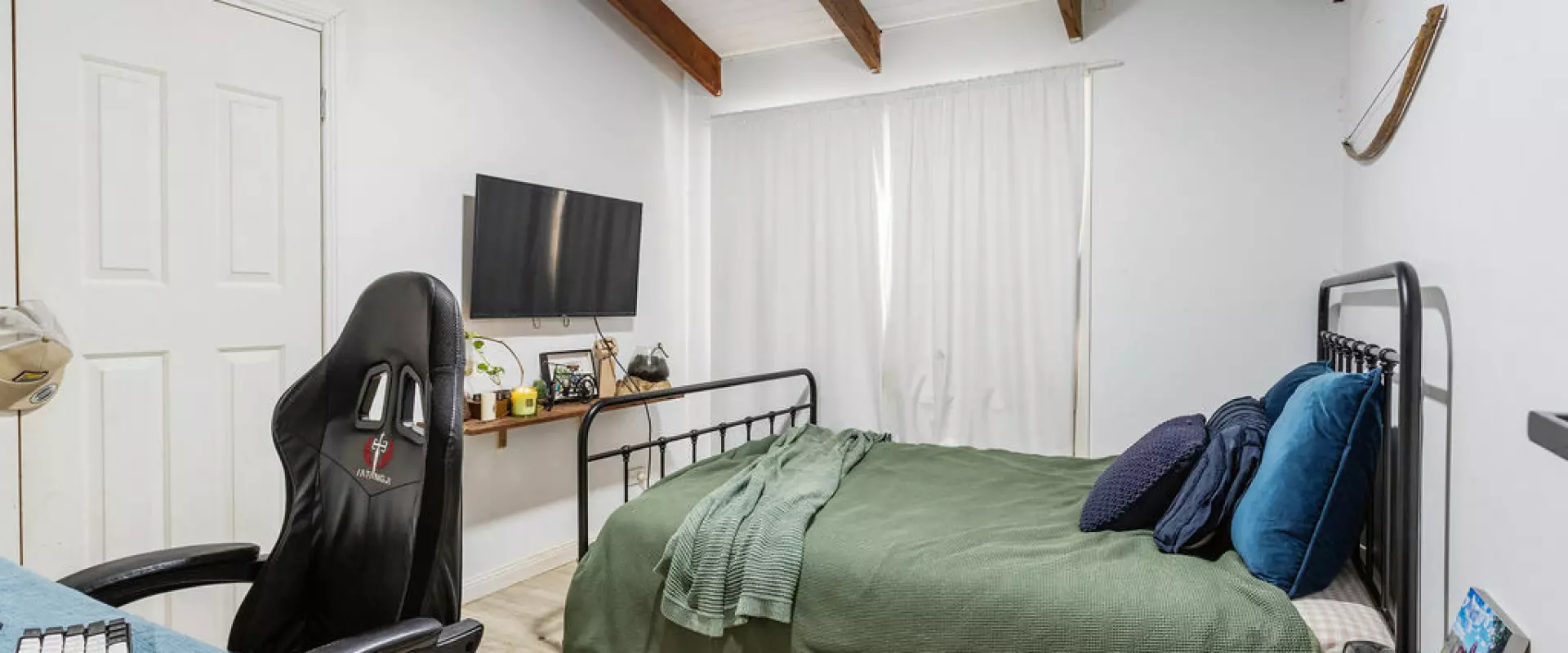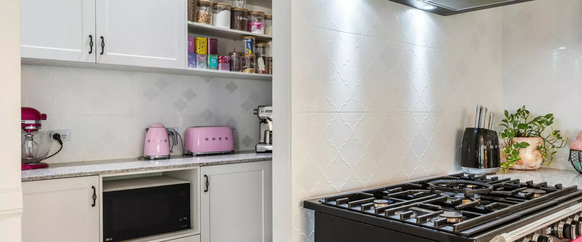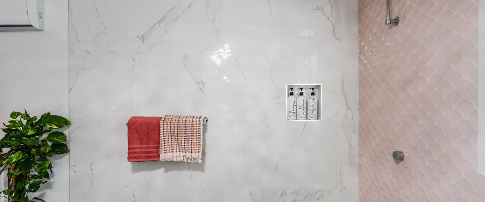 Originally a four-bedroom layout, the current owners have combined the 3rd and 4th bedrooms to create a luxurious master suite. The open ensuite features beautiful fish scale tiles, a free-standing bath, and an open shower — an absolute WOW Factor. The main bathroom is equally impressive with a pink claw-foot bath and high-end finishes.