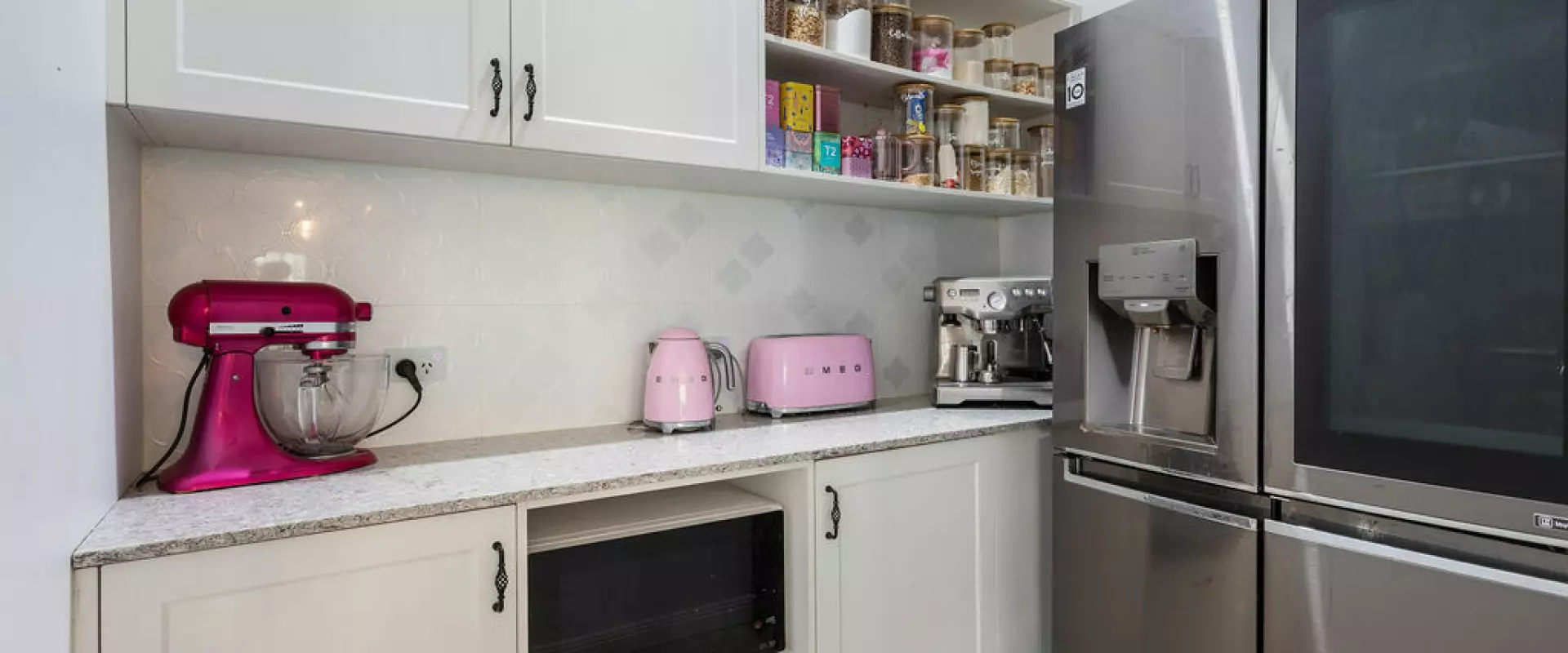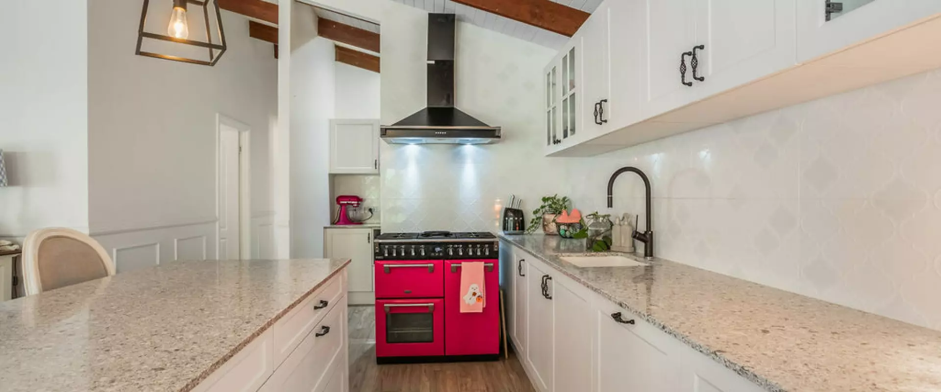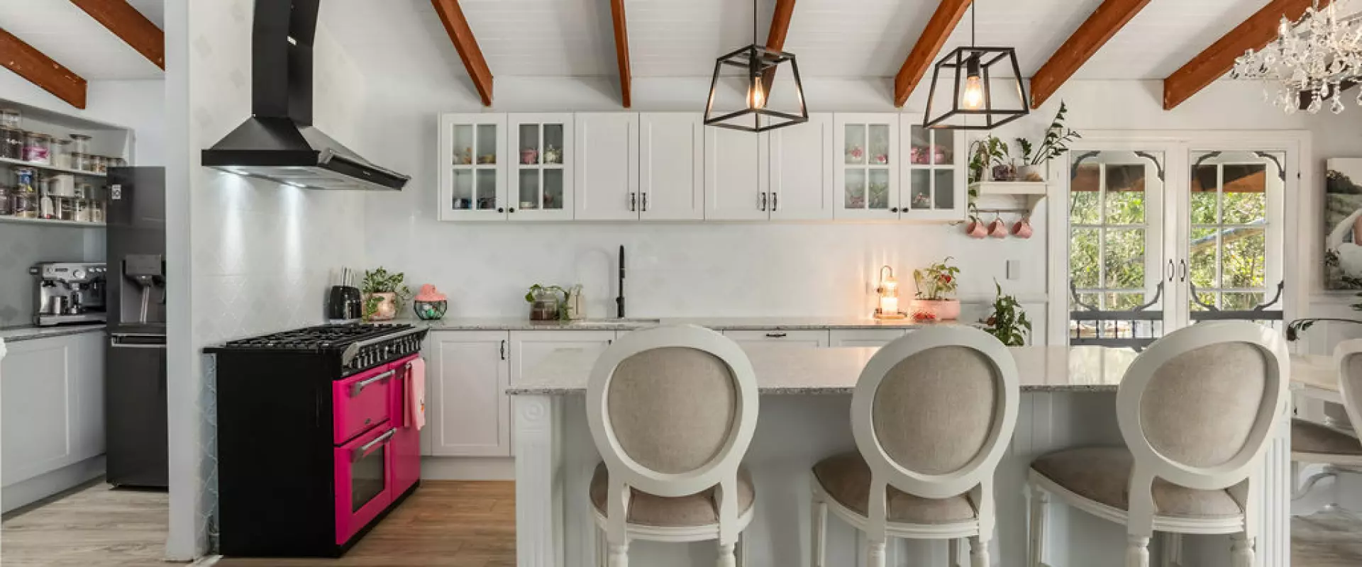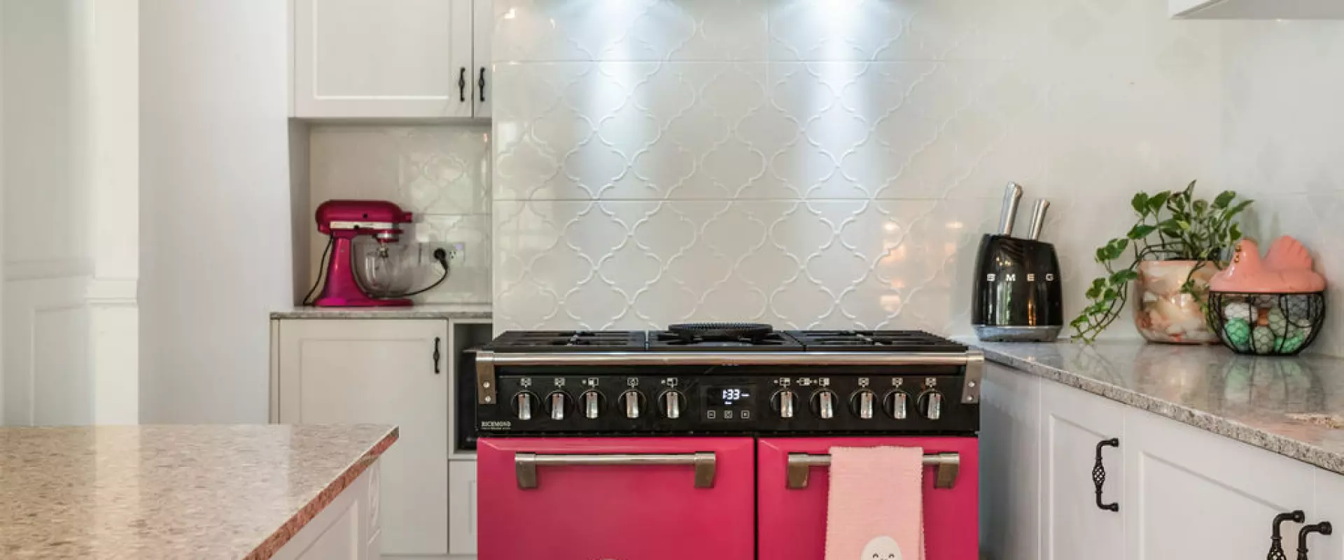 • Stunning, top-of-the-line hot pink Belling freestanding gas stove – an absolute showstopper!