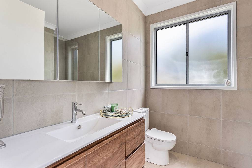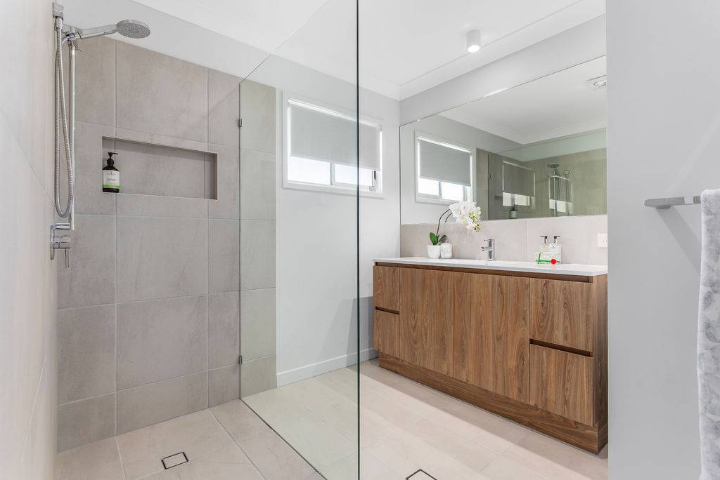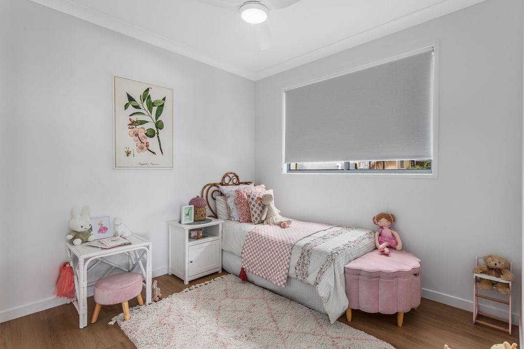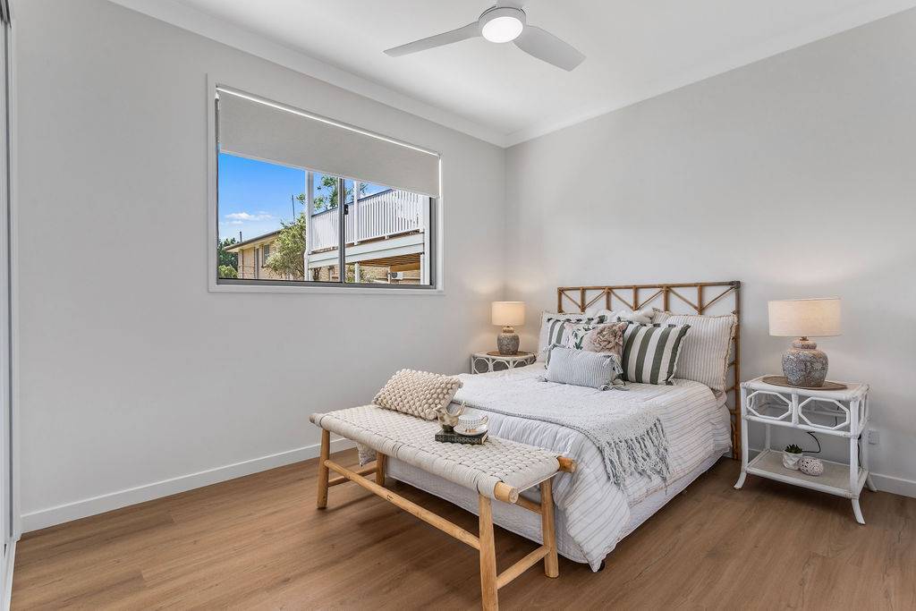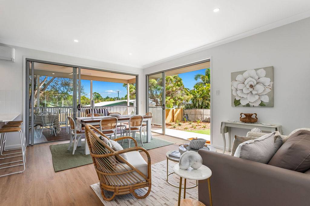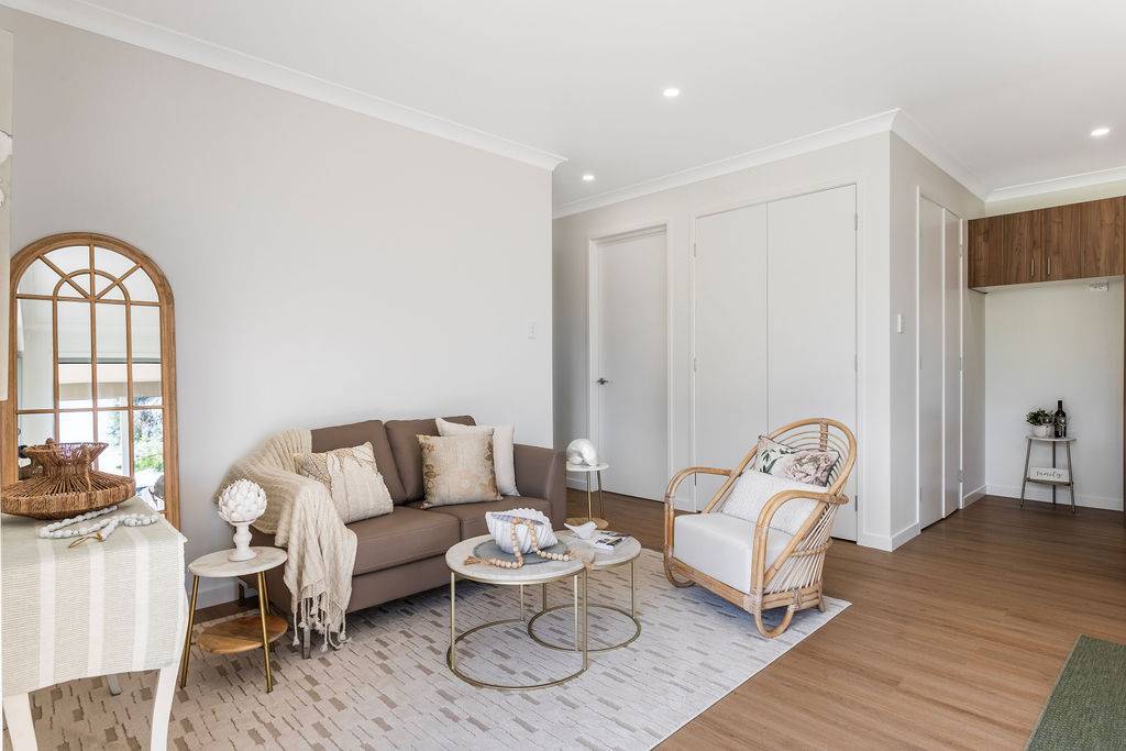 The granny flat boasts open-plan living, two spacious built-in bedrooms, and a central bathroom complete with a walk-in shower.