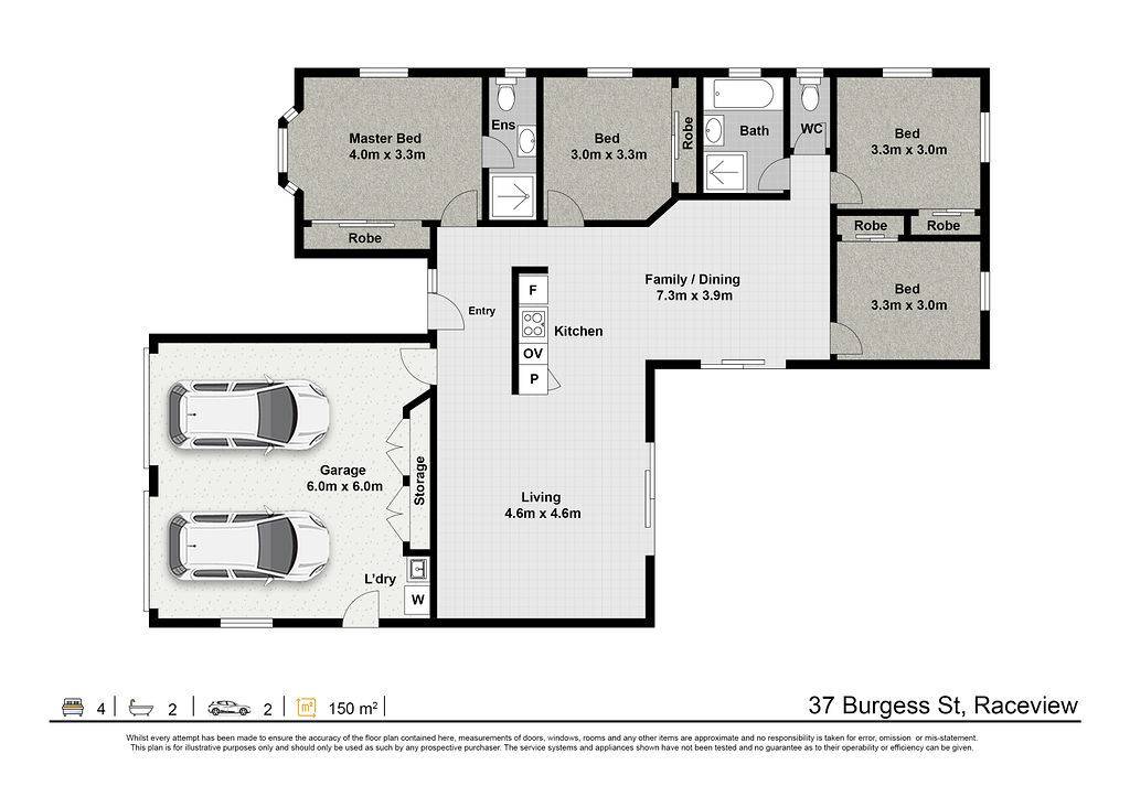 • 555m² block with space for a caravan or additional parking at the front