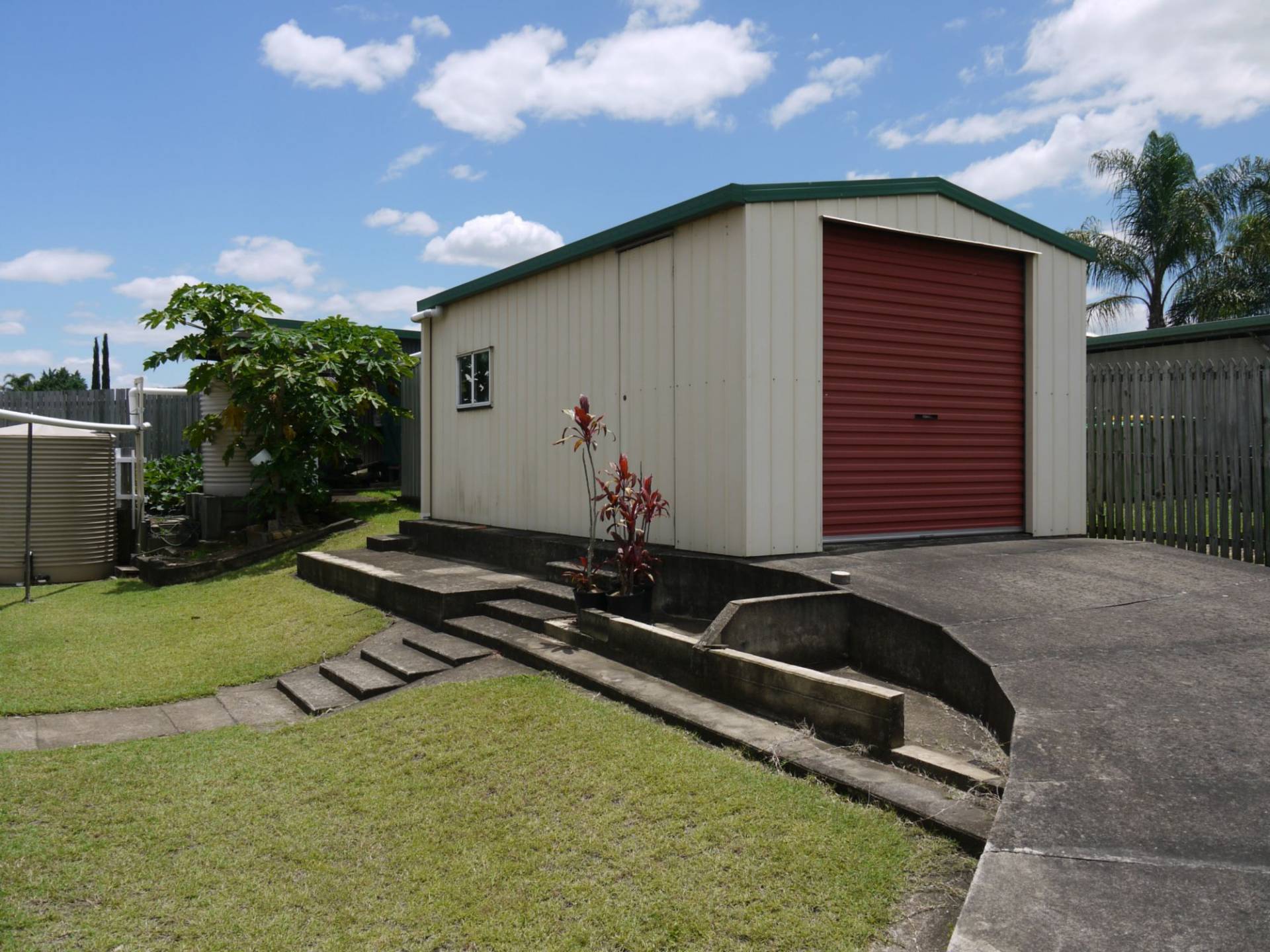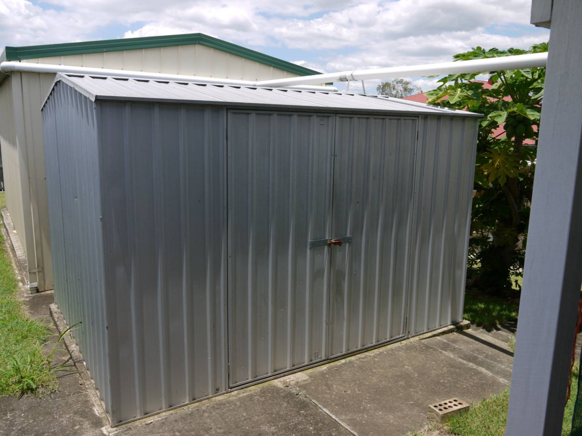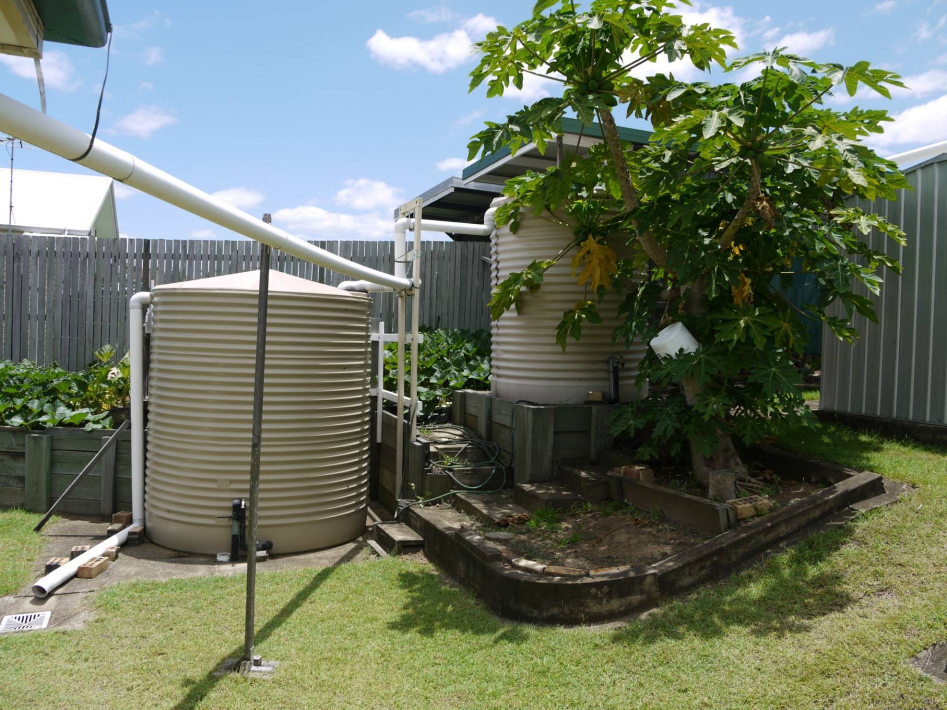 Outside there is a garden shed for storage, two rain water tanks, and a raised garden bed ready to be turned into a vegie patch or flower garden.