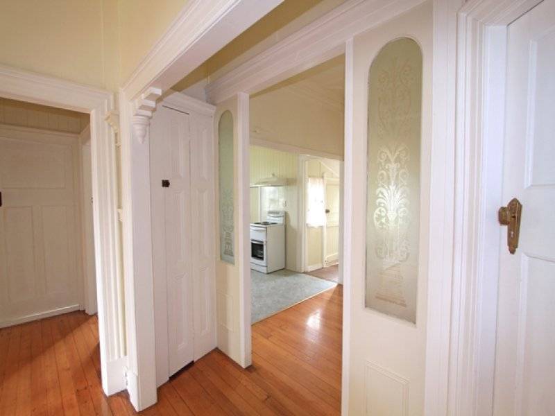 Featuring two large bedrooms with gorgeous bay windows, separate sleepout with French doors, large central living area, large kitchen, dining room, bathroom, upstairs laundry, and polished floors.