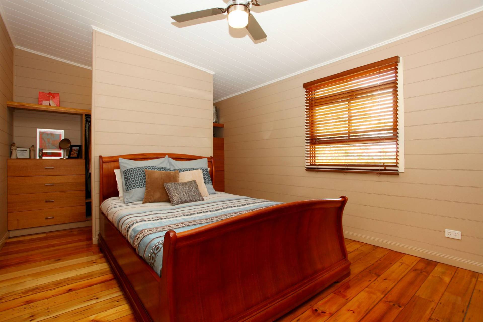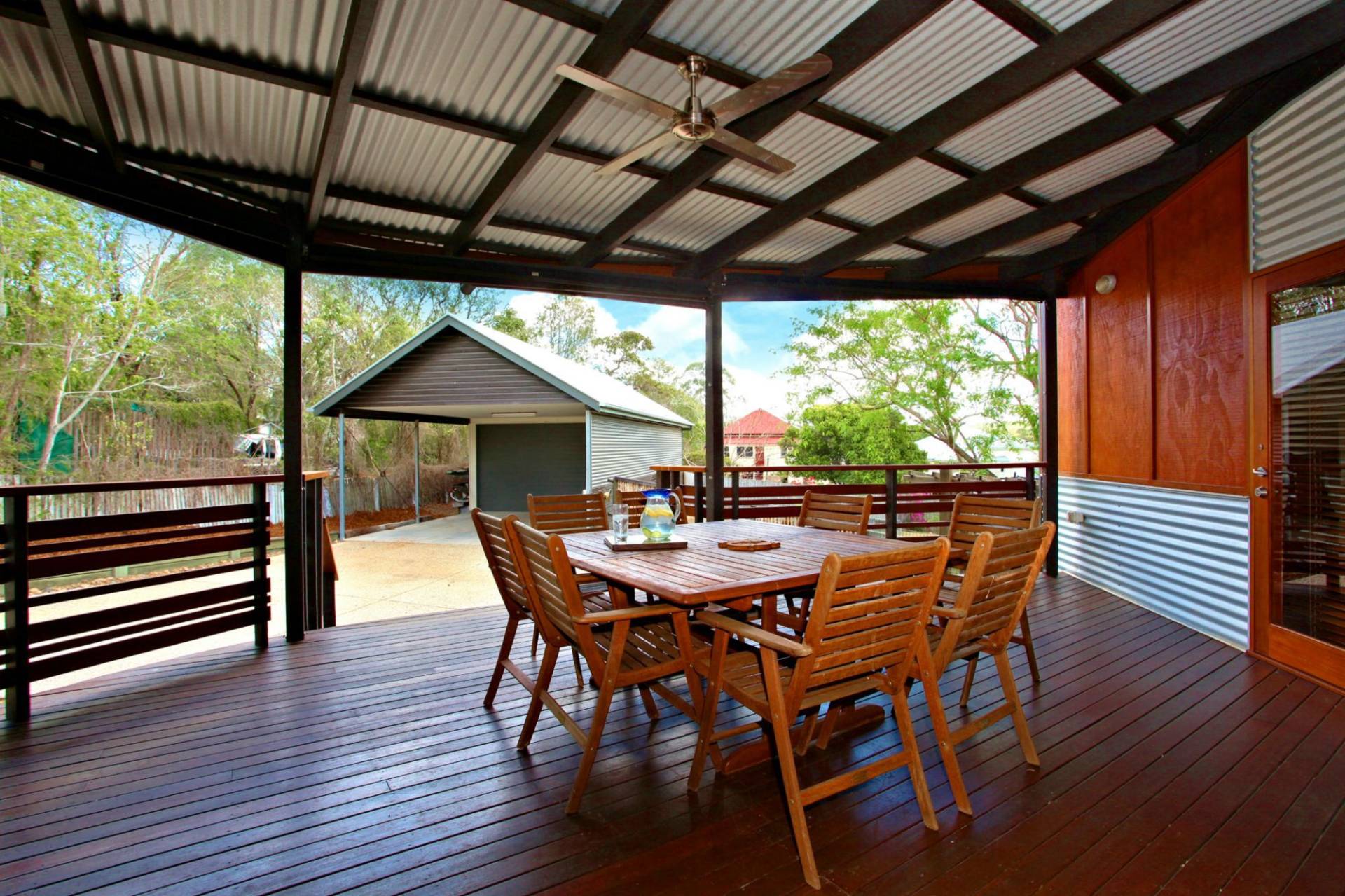 The laundry is located in the new large main bathroom ideal for the busy mum. Storage galore in the mezzaine floor of the huge shed, plus step out which can accommodate a six metre plus boat, plus cars and work area.The 1012m2 block is separated by a fence which features the iron from the original roof and a herb garden in the old laundry tub. This is definitely when old meets new and blends perfectly for the modern family. The property has been re roofed, restumped and rewired. All verandah decking replaced and painted inside out with a blend of avocado, steel gray and Spanish white to make this a stand out property. A one of – wont last. Do not delay inspection.