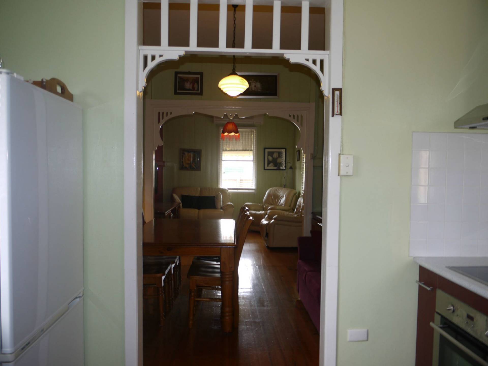 What a charming home with large open plan living separated by delicate white fretwork archways and serviced by a roomy kitchen with tons of bench space and cupboards. There are 3 bedrooms, 2 built in and large inside laundry and & neat bathroom. Enjoy coffee or a wine on the secure breezy front verandah. The fully fenced yard provides privacy and security and enough grassed area for play equipment and pets. Beautiful elevated position, walk to rail and schools. A tidy home with character wont last long at this great price!