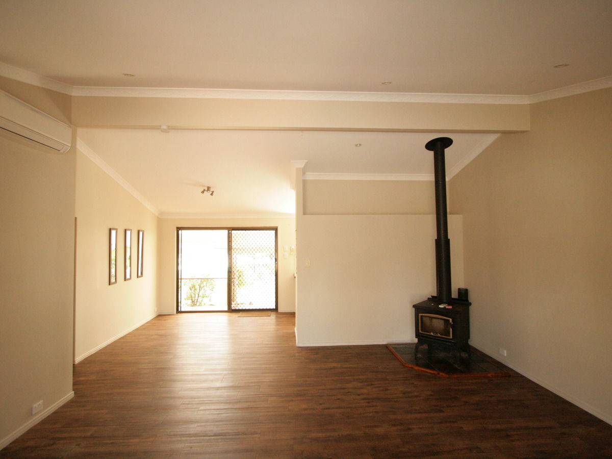 Contemporary family home with 3/4 bedrooms,2 with built ins. Cathedral ceilings in lounge/dining room. Log burning wood stove for memorable winter gatherings. Rumpus/media room with own entrance. Family size galley kitchen with plenty of cupboards. Excellent 2 way bathroom. Reverse cycle air con in main bedroom and living area. Ceiling fans. Large laundry. 5 car accommodation. Huge outdoor entertainment area. Private established landscaped garden with abundant bird life. Fully fenced yard. Chook pen. Vege patch. Close to Karalee Shopping Centre and Tavern.