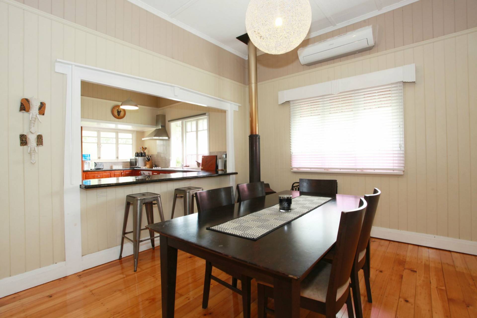 Move in and enjoy all the benefits of this renovated Bungalow. Big, Big timber kitchen with stylish black granite bench tops has cut through into dining and walk through to roomy timber deck, perfect for alfresco dining when friends drop in. Open plan living with large spaces is great for the young family. The master bedroom is large and airy and is air conditioned. There are two more bedrooms. The interior is newly painted and features coloured glass windows and honey coloured pine floors. The new bathroom has separate bath and shower and the separate water closet has its own hand basin which services the deck. Under the house is concreted and provides more entertainment area car accomodation, laundry and storage. The yard is fully fenced and there is a separate car park to the side. All this and walk to CBD, rail & Riverlink. Easy access to Warrego Highway.