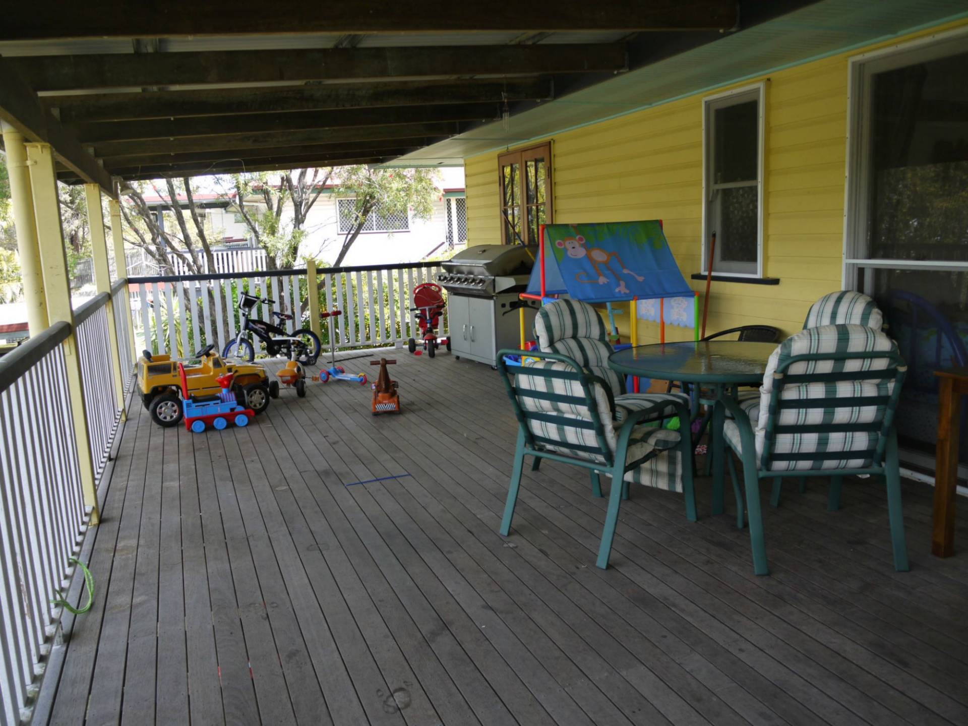 Secure breezy patio, side verandah & huge back deck encase this solid chamferboard home and provide huge recreational areas for alfresco dining and outside play areas for children. The main living area is a good size and features polished hardwood floors. The three bedrooms will fit double beds and are built in. Double carport and secure back yard with six foot fence. Extra under cover area under deck at back. Currently excellent tenants in place. Ideal for investor.