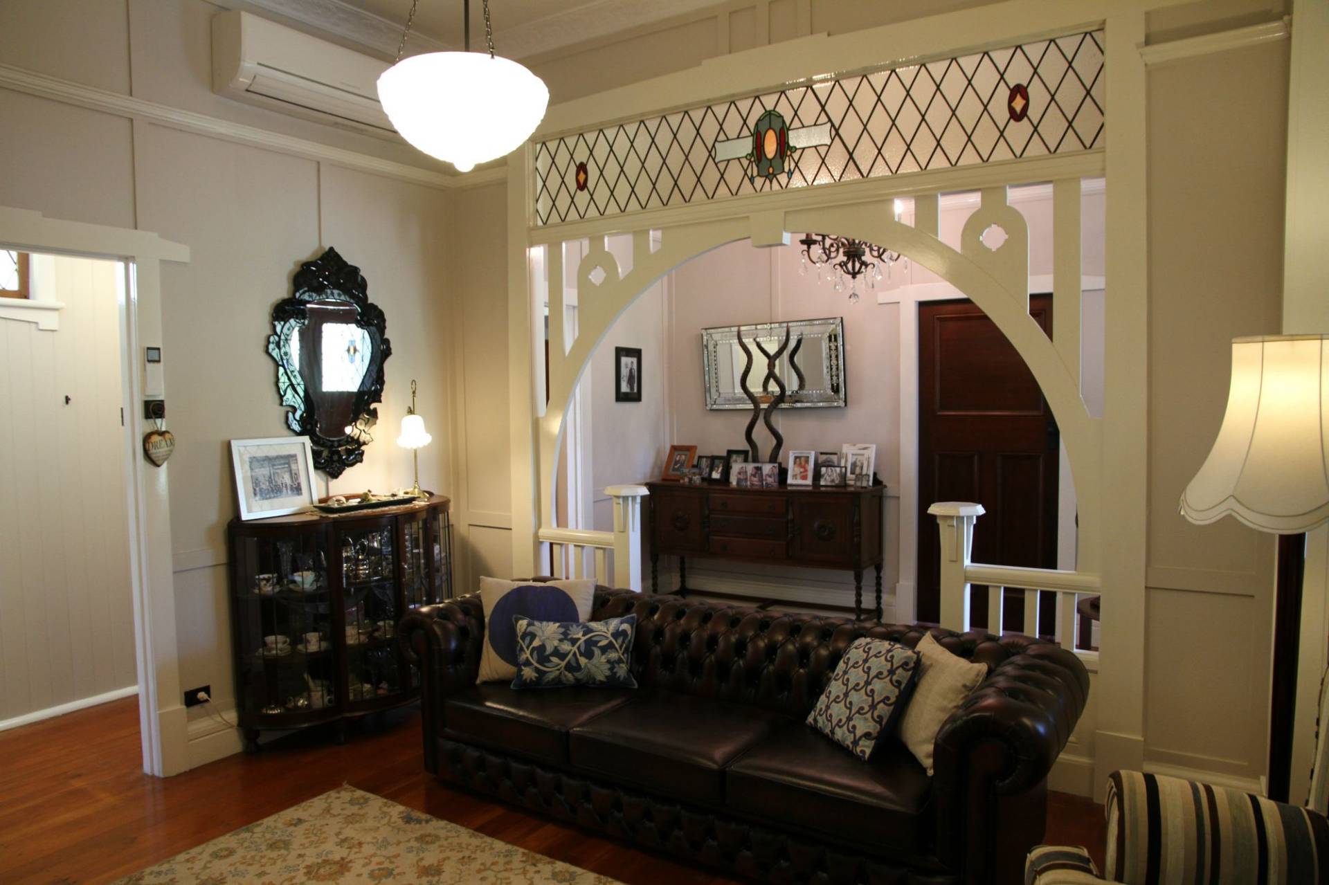 Superb Brockwell Gill Bungalow restored to perfection. Impressive street appeal makes this landmark property iconic to the entrance of Queens Park. With great pride the current owners have spent 5 years meticulously restoring this architect designed master piece to its former grandeur. Trade mark Brockwell Gill silky oak doors and windows have been fully restored including all 80 windows stripped and leadlight restored. For those who appreciate quality design and elegance this home will delight you from the gorgeous original tessellated tile entry to the expansive deep verandahs ideal for alfresco dining overlooking Queens Park and enjoying North Easterly aspect which is accessed from all living areas and bedrooms. The trademark Brockwell Gill silky oak – leadlight entry opens to the formal living area featuring timber arch with pot stands adorned with a full width leadlight feature inset and topped off with ornate horse hair plaster ceiling. These delightful ceilings feature throughout. Enjoy meal making in the homey art deco kitchen with original brick tiles lining the stove recess and splash back. Massive gas stove is a cooks dream. The renovated laundry adjoins the kitchen for convenience. All bedrooms feature ornate plaster ceilings and 2 of the 3 are built in. Painted in tasteful colours the house is dressed by devine hedged garden rooms and rolling lawns, fully fenced for pet safety and to cap it off a discreet chicken coop in the corner. Walk to CBD, schools and rail. A rare opportunity to own a spectacular piece of real estate.