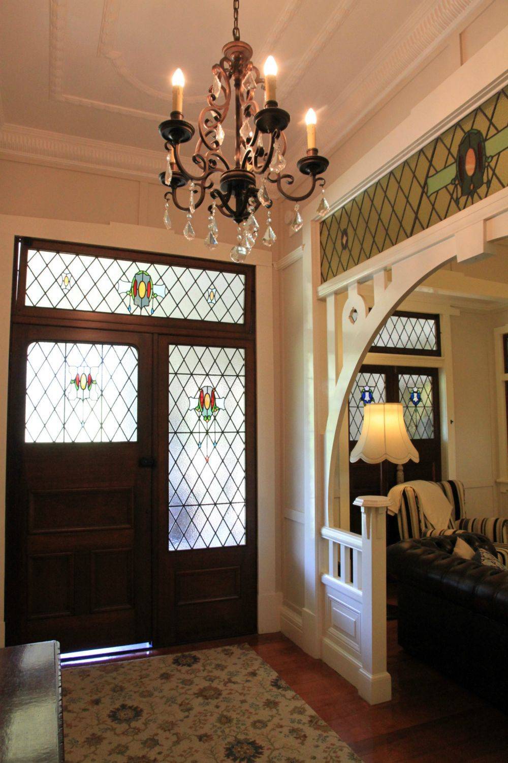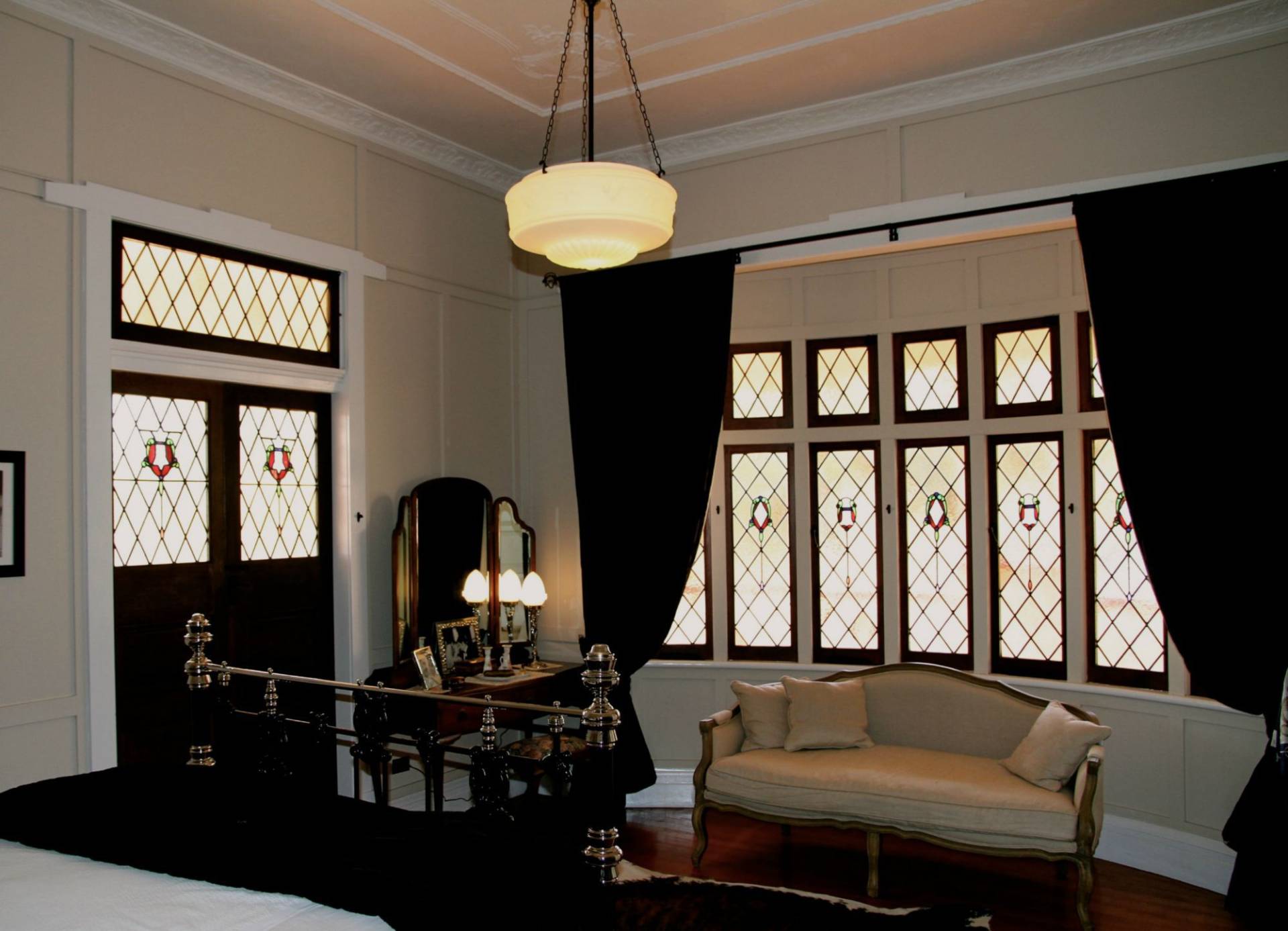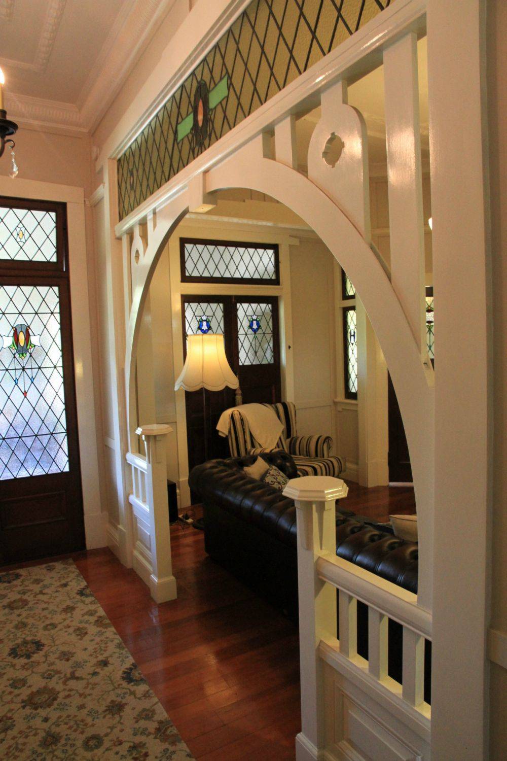 Hood detail is a feature of the elevation of Bowerlea that addresses Milford Street, with the detail of the hood over one of the bay windows repeated in the hood over the formal entrance. Other features of the house include silky oak windows, doors and a featured arch way, 80 leadlight panels, 2 bay windows, one of which is semi circular, and horse hair plaster ceilings.