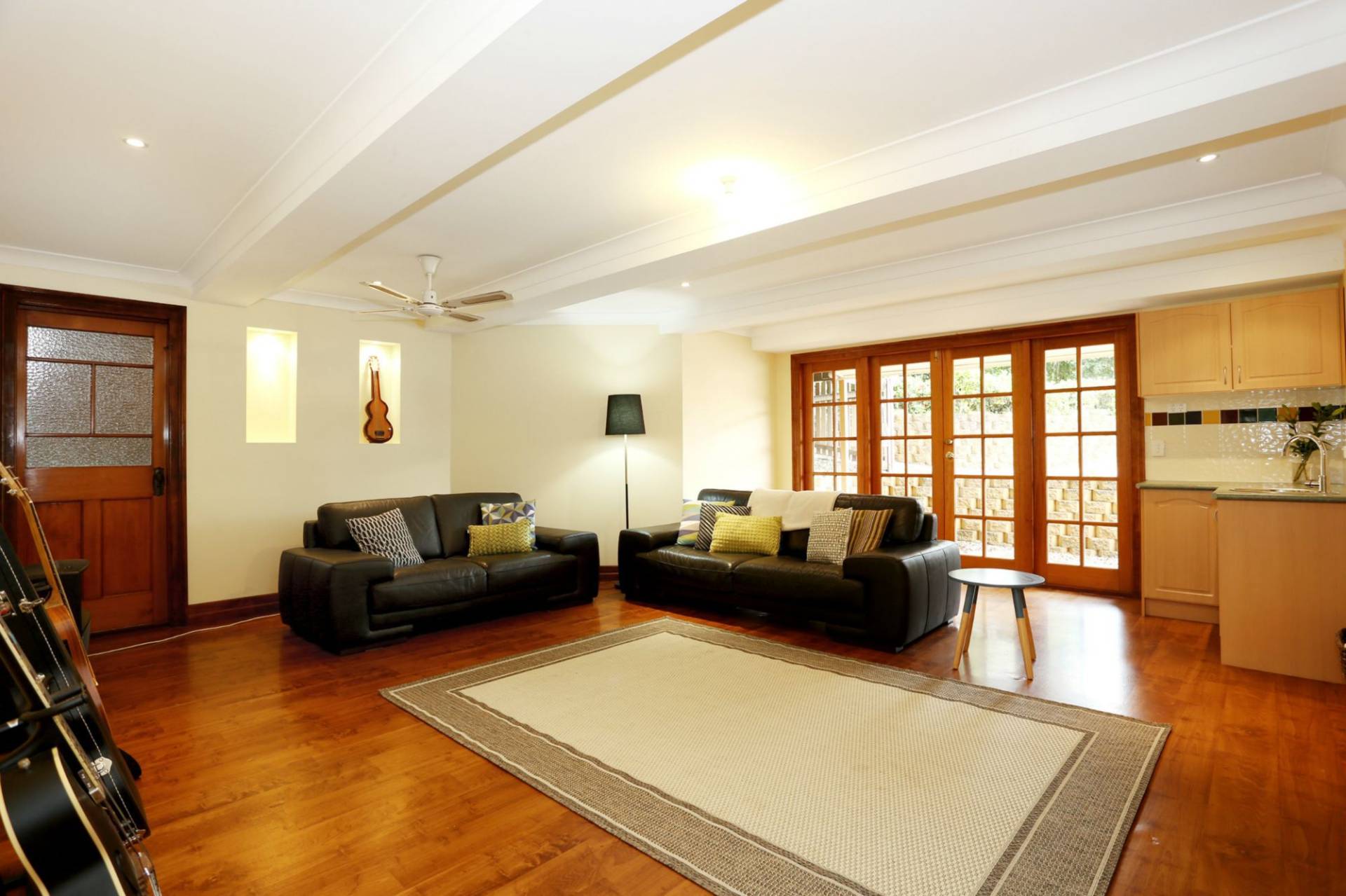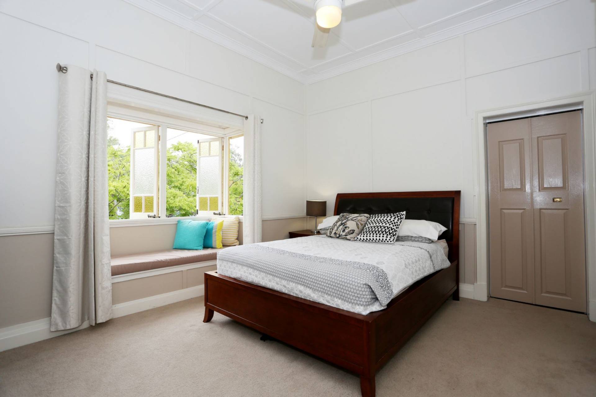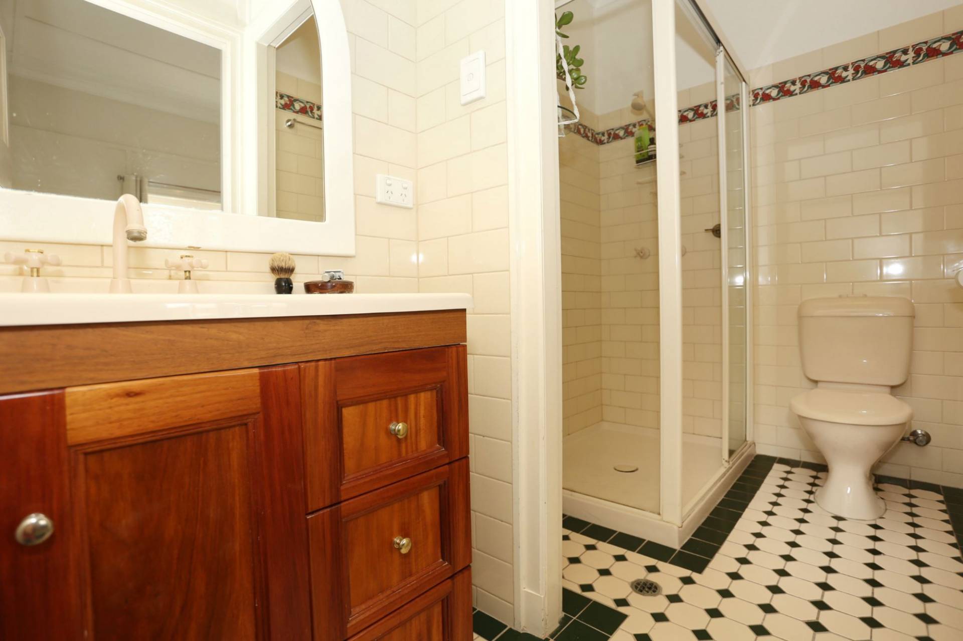 All the charm and features of this era are captured on the top floor with warm timber floor, high ceilings and coloured glass casement windows with their original brass hardware dated 1927. 3 of the 5 bedrooms are located on this level with the main bedroom featuring an ensuite, built in robe and romantic bay window. A second bathroom services the other 2 large bedrooms on this level. There is a large study area off the living.