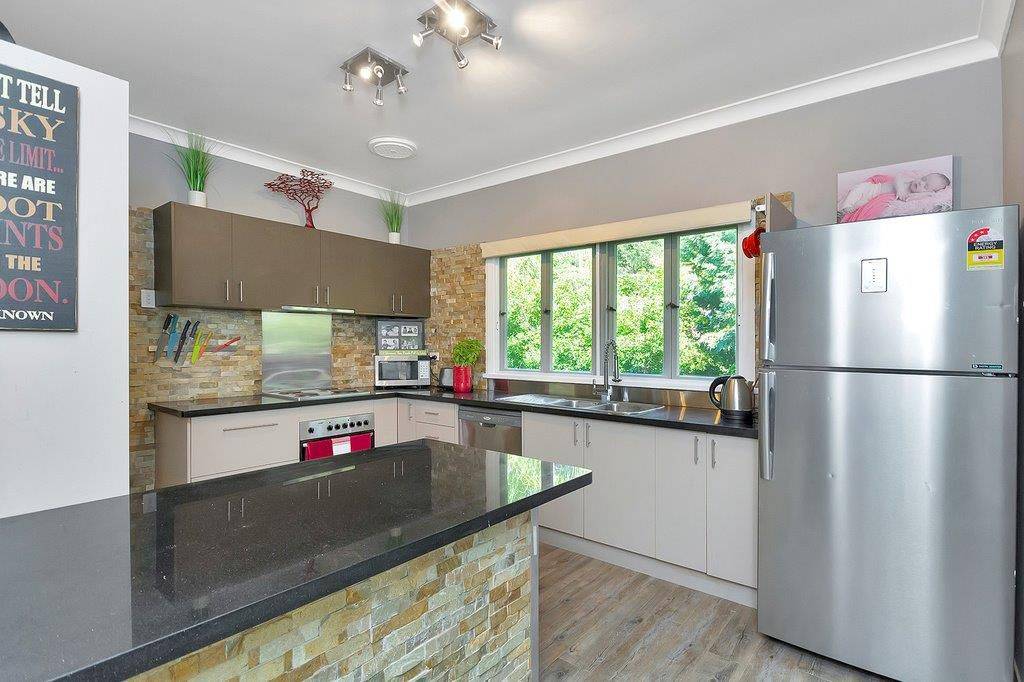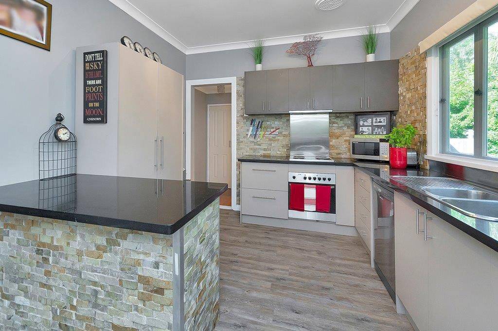 The property has been redesigned to accommodate open plan living with a functional kitchen that has great storage, granite bench tops, stainless steel splash backs and featuring eye popping brick tiles.