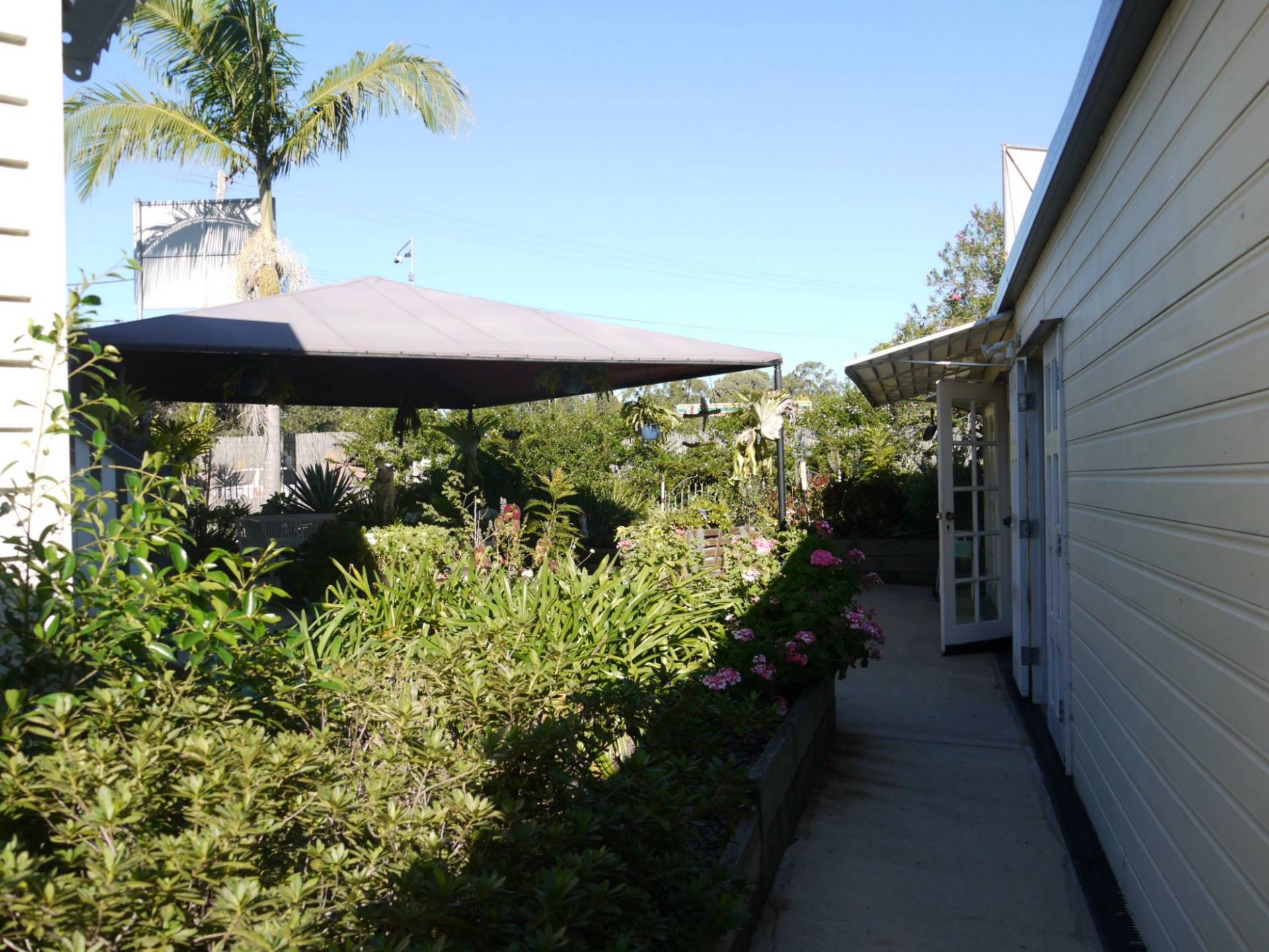 The spacious courtyard surrounded by landscaped gardens and water feature certainly gives you a peaceful and tranquil atmosphere for your customers or your own personal space. The property is fully fenced, and has a bonus massive shed/storage with rear access, an extra room and two large air conditioners.