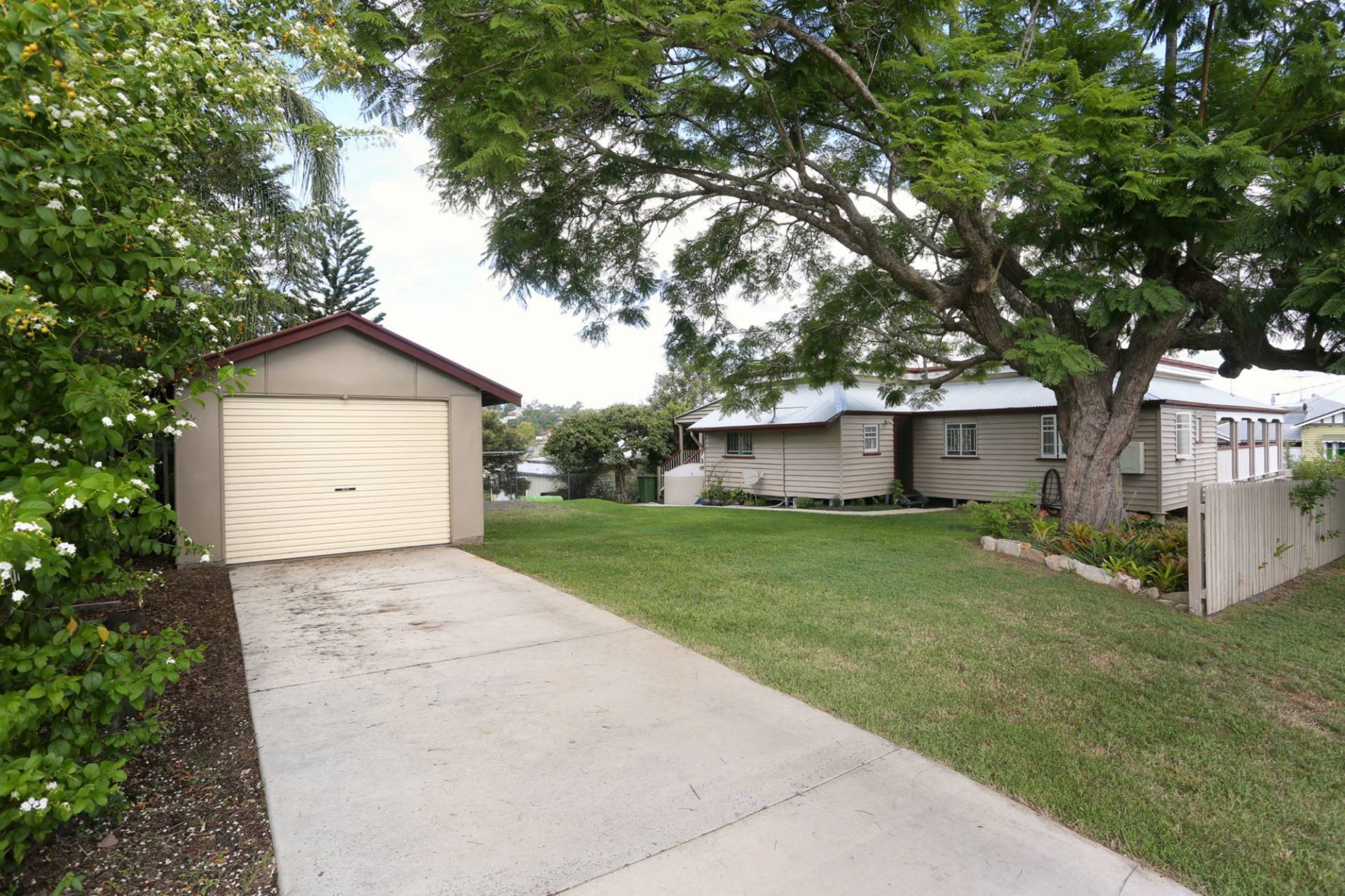 A concrete driveway leads to a lock up shed for car storage. The backyard has room for a large vegie patch or chook run.