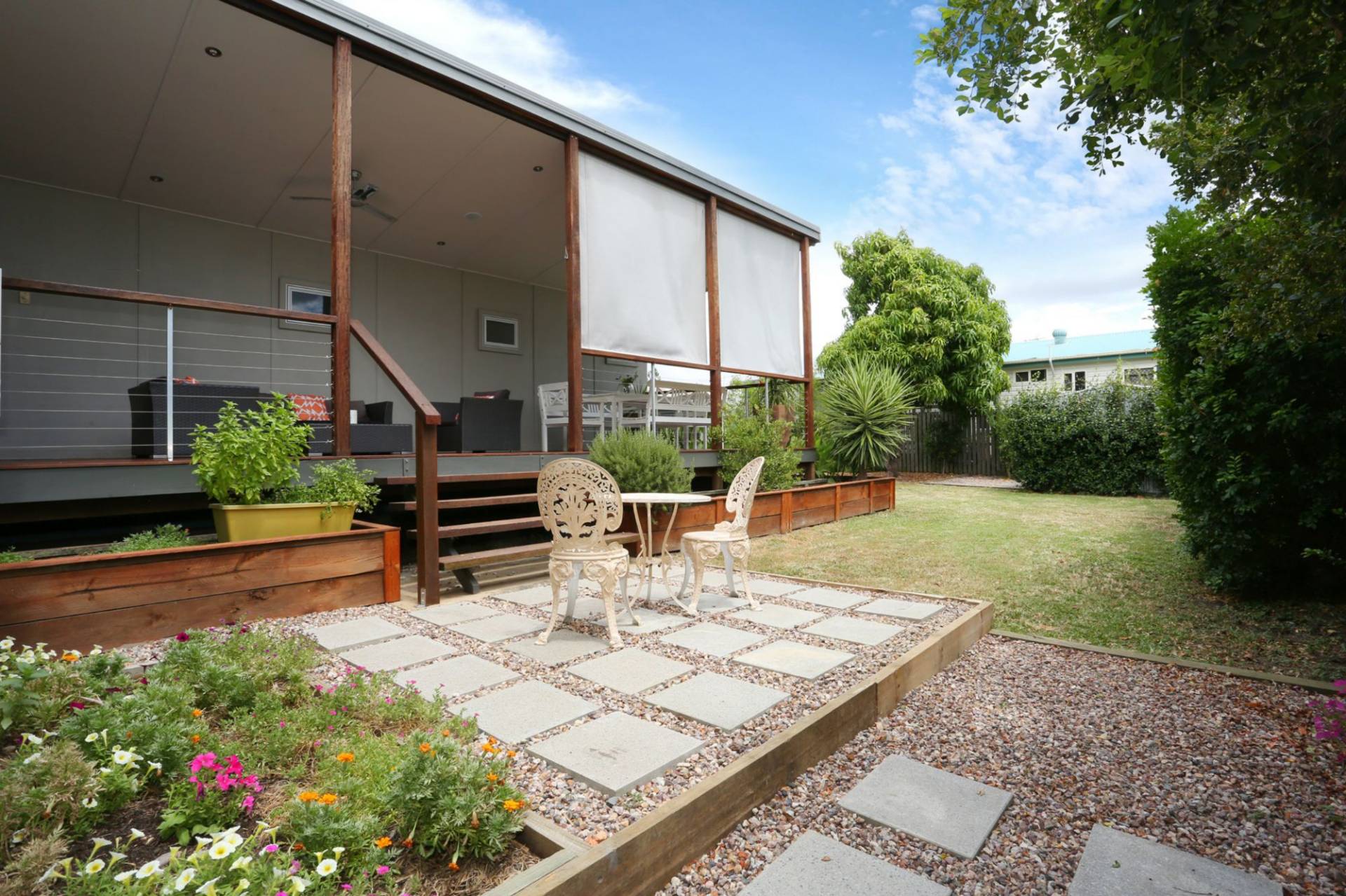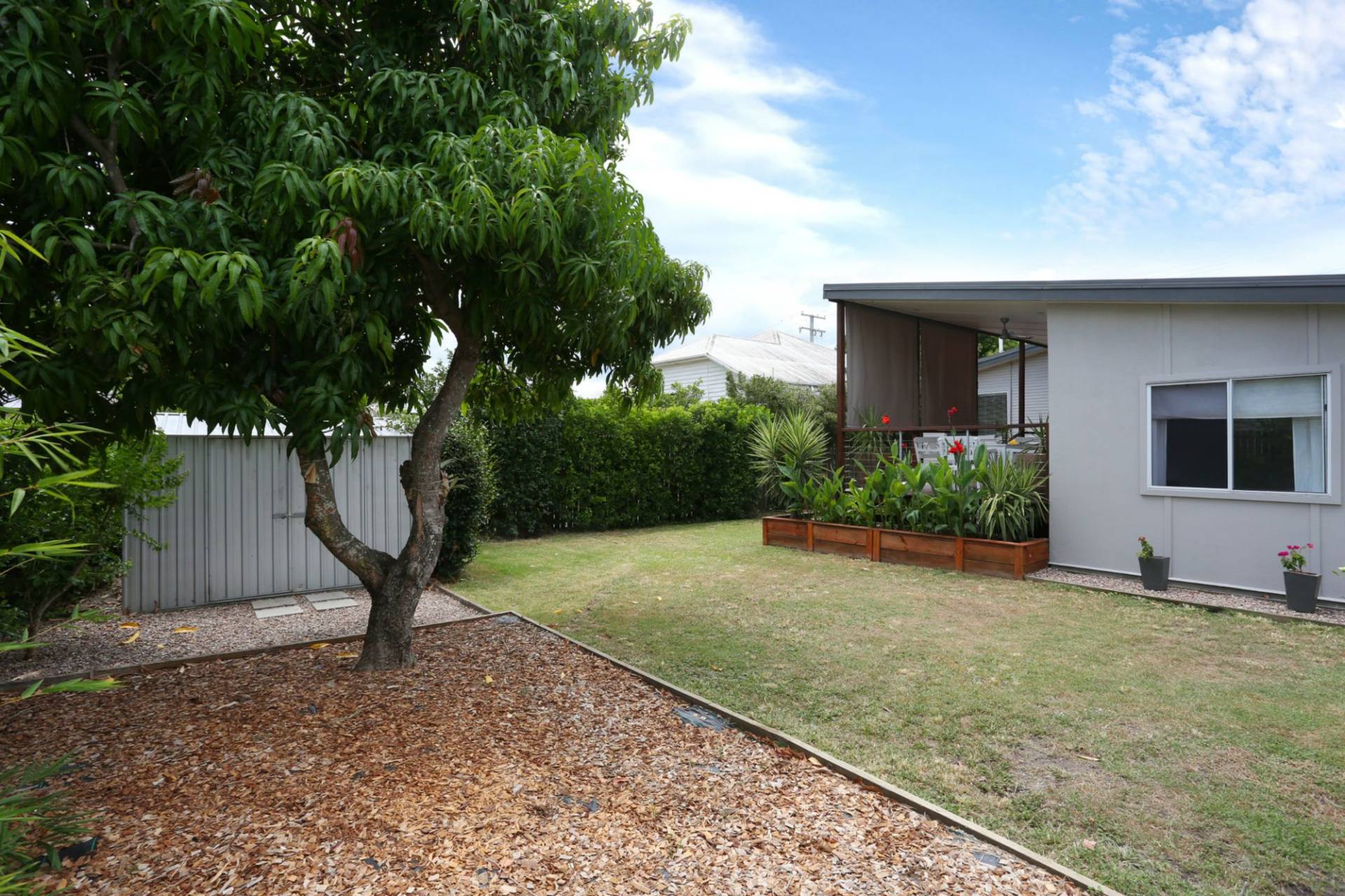 Room for swings and trampoline on the level back yard which also has a garden shed and 5,000 litre water tank. The house also has 1.5kWatts of solar panels.