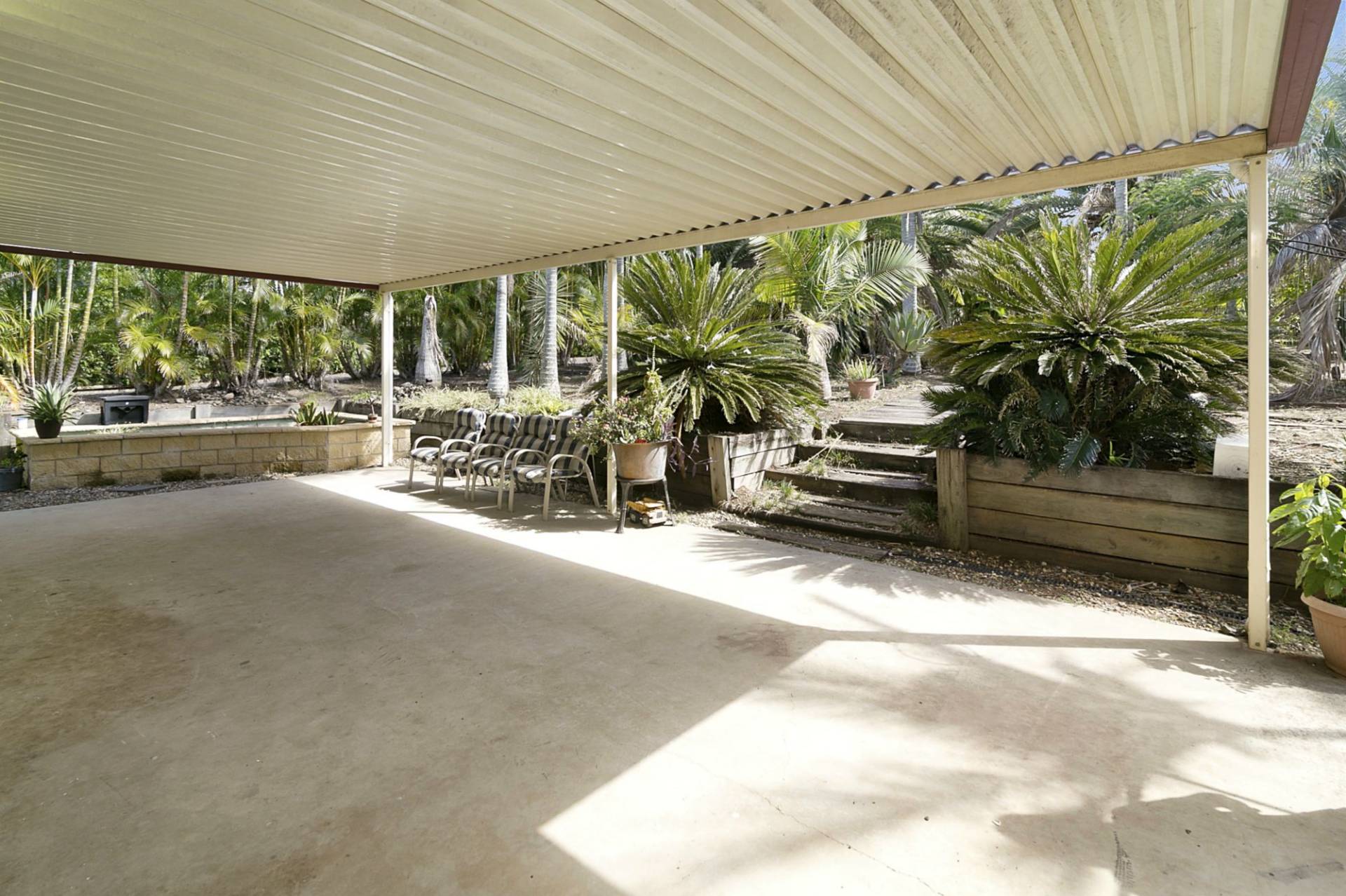 An advanced tropical oasis with mature palms and lovely walkways surrounds the rear of the house. As expected there is a shed and the 5,745 sq metre yard is fully fenced and dog proofed.