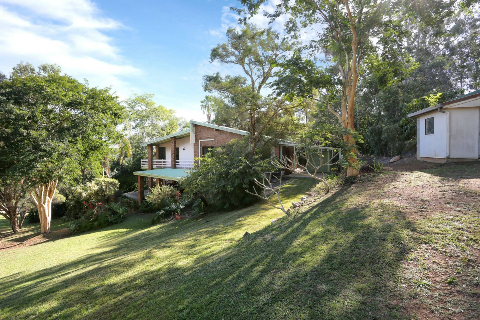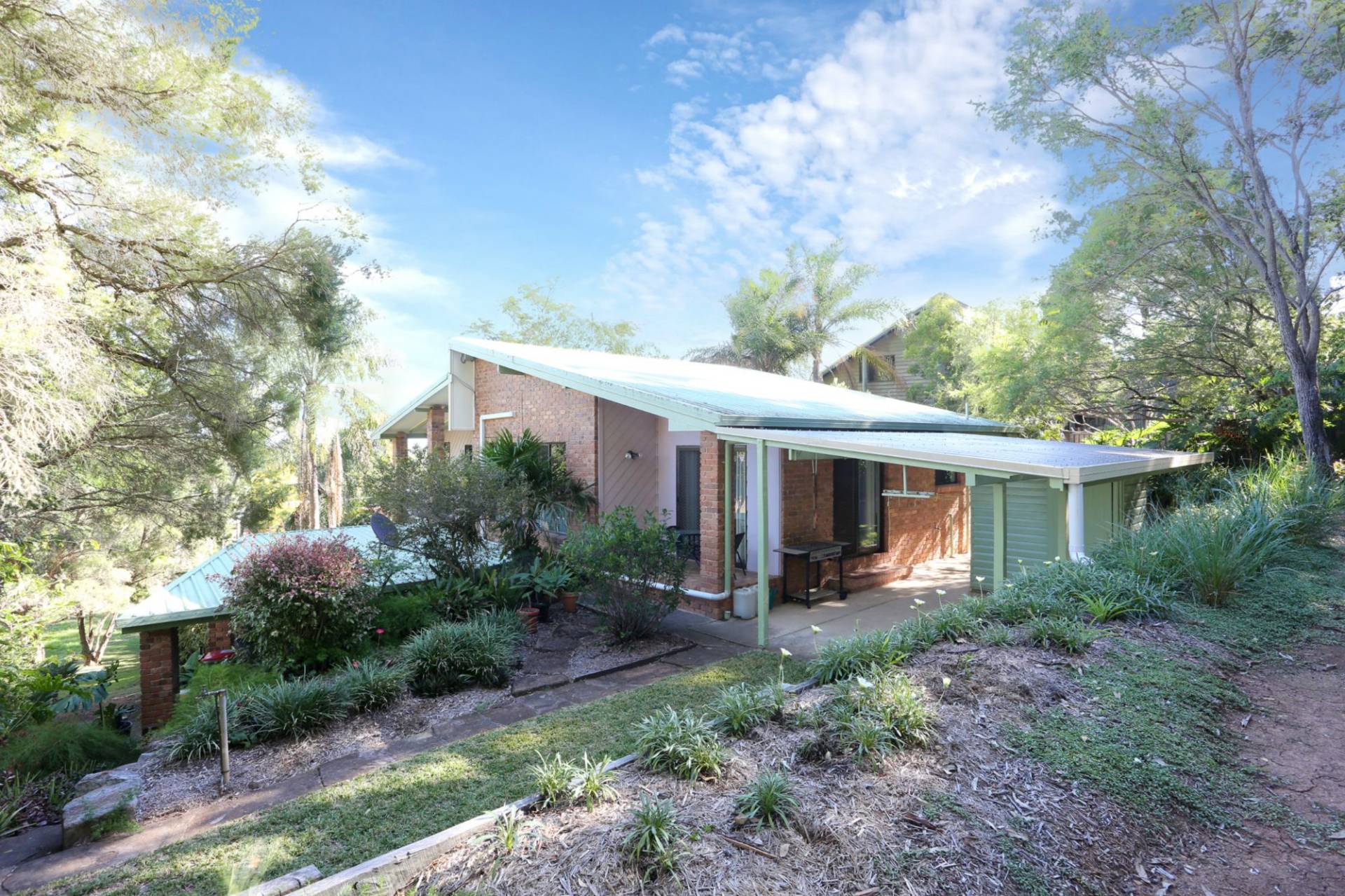If you have an eye for quality and want your home to be uniquely designed and enhanced by its own spectacular native garden, then you must inspect this home. This quality high set home has been individually crafted, with fabulous cathedral ceilings enhancing the spacious living and dining rooms upstairs, whilst downstairs the superior structure and timbers used in this home form the ceiling. Downstairs you will find a fully contained living area with designer kitchen, large bathroom, laundry, bedroom and open plan living room. There is fantastic storage downstairs, part of which could be re-modelled into a second bedroom if required. The views from the bedrooms upstairs must be seen to be believed! Step out from the bedrooms onto a wonderful "U" shaped balcony where you can sit with a glass of wine, or a coffee and just gaze at these views and feel at home sitting on top of the world. The front balcony can also be accessed through the spacious formal living room. The living room features superb polished timber hardwood floors as do the bedrooms, hallway and dining room which is perfectly positioned just off the dream kitchen. Not only does this kitchen feature lots and lots of beautifully crafted Tasmanian Oak cupboards, there is also a huge walk in pantry. The easy and comfortable "flow" from the living and and dining rooms is completed by a covered pergoda, perfect for those occasions when outdoor entertaining is preferred. The 841m2 garden is terraced in many places with substantial rock and stone retaining walls, and there are many individual areas perfect for walking or just sitting enjoying the gentle morning sun. No expense has been spared in the landscaping of this exquisite, tranquil garden. You will notice this when you meander through the stone pathways and take it all in. 6 solar panels - 1.5 kilowatts, with an invertor that means more could be added.There is so much more to this wonderful, affordable home for you to see and feel, so please call me to arrange your individual inspection appointment. This home has been a greatly loved family home for the last 24 years....now it's your turn.