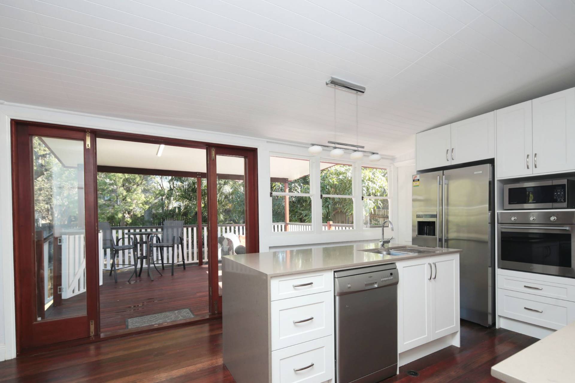 A very functional kitchen with extra cupboards and bench space adjoins the family meals area and spills onto a generous deck.